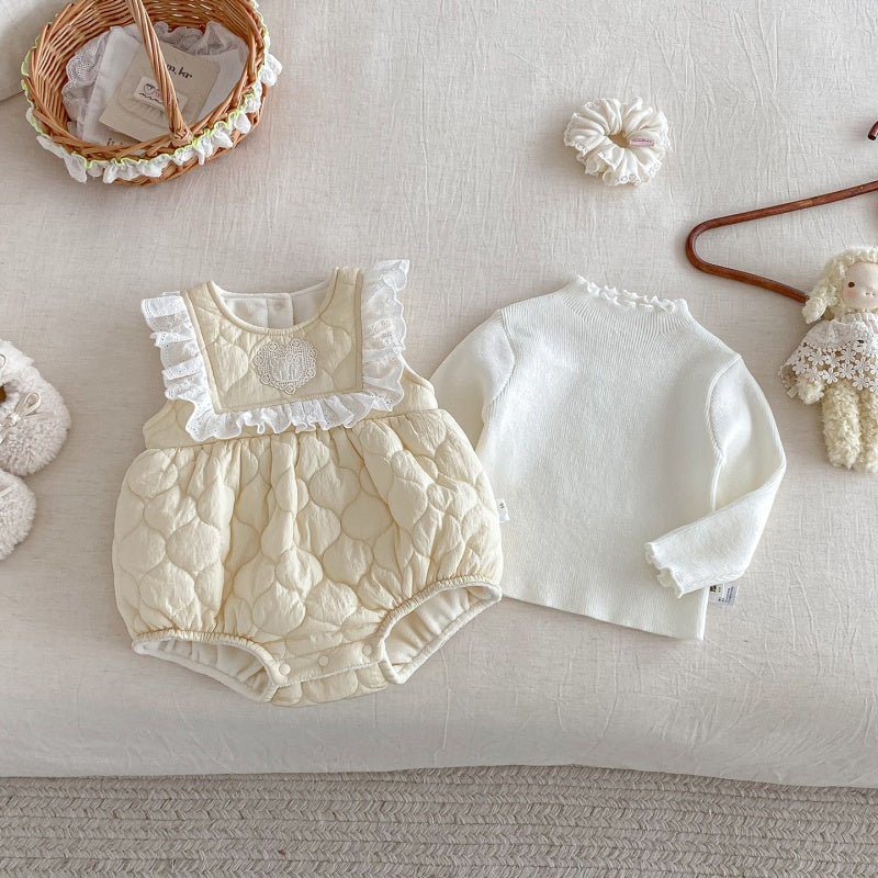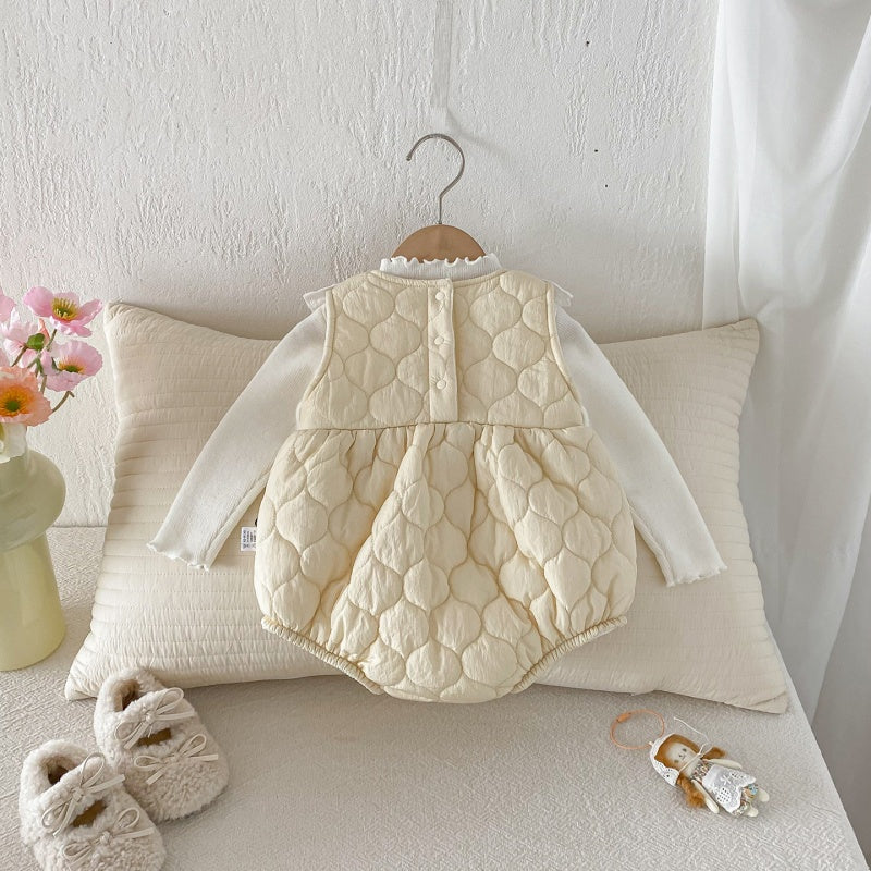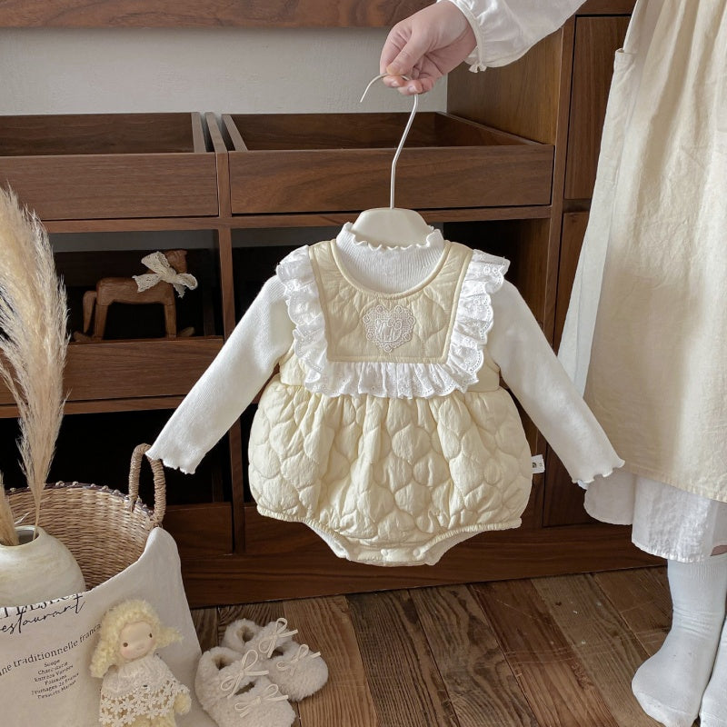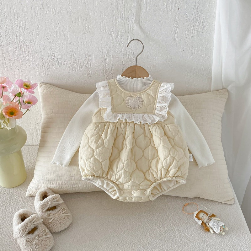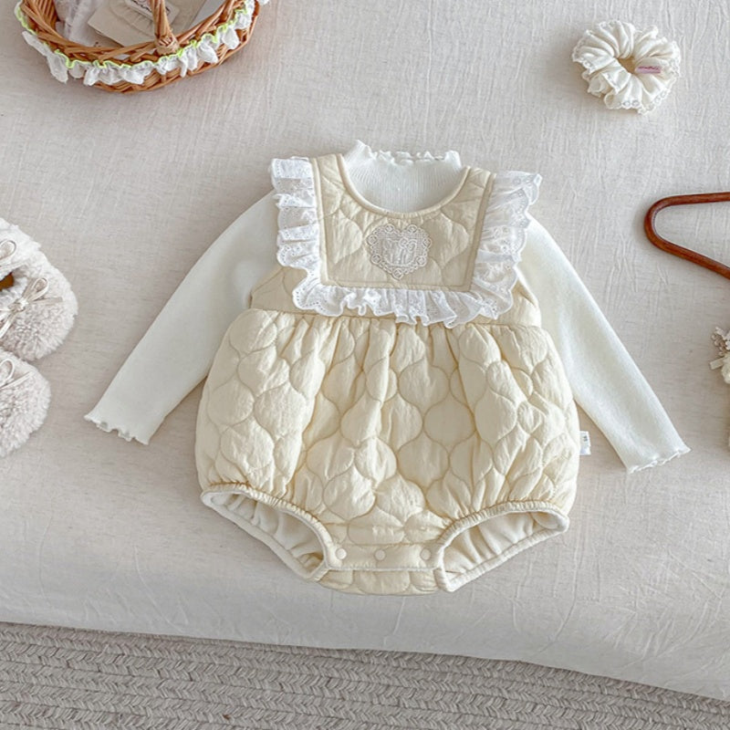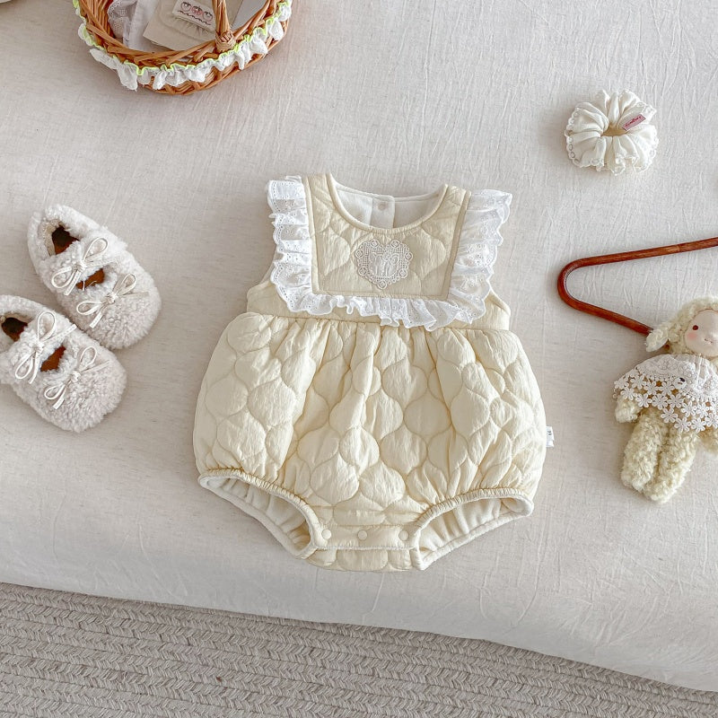 【BABY】冬新作レーススクエアカラ—キルティングあったかロンパースSK103111