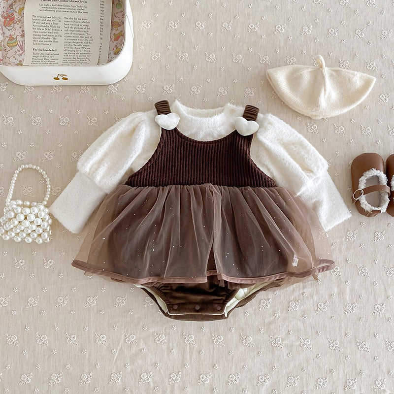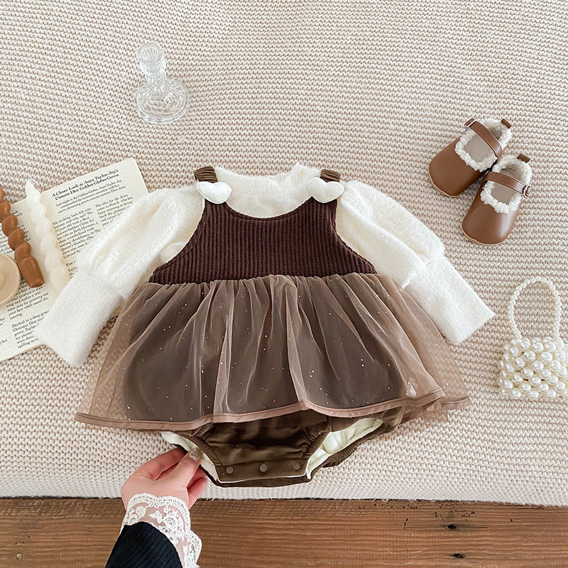 【BABY】冬新作厚みのあるベルベットのスカートロンパースSK11414