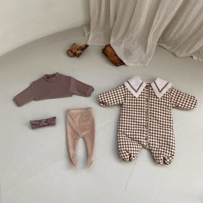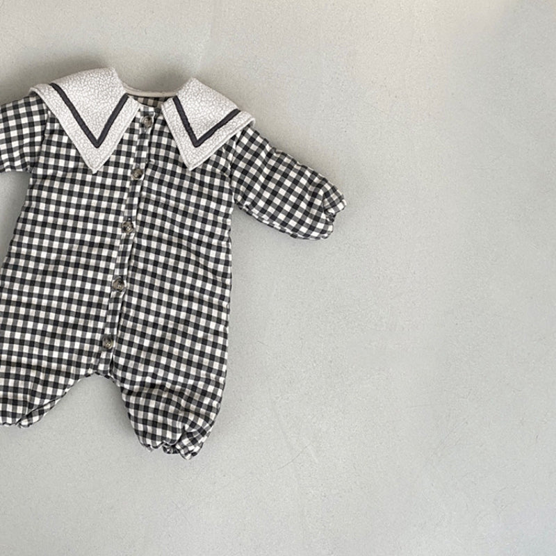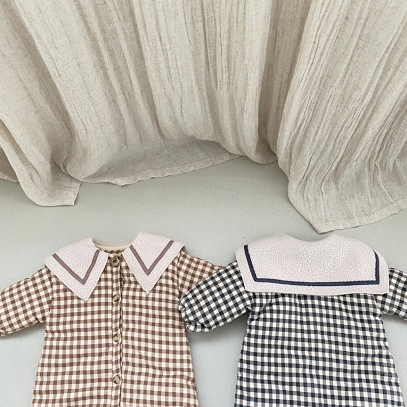 【BABY】冬新作学院風ボア襟チェックカバーオールSK102208