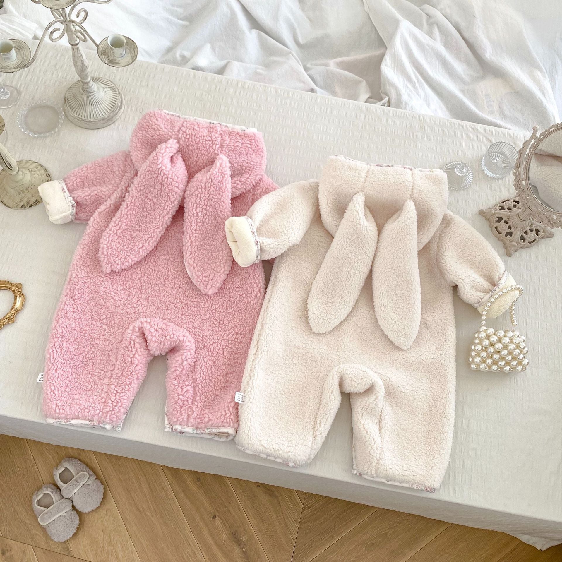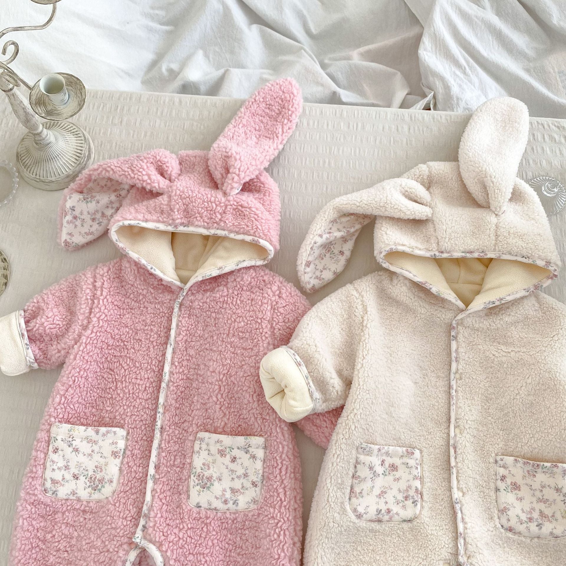 【BABY】冬新作小花柄うさぎ耳フード付きカバーオールSK103105