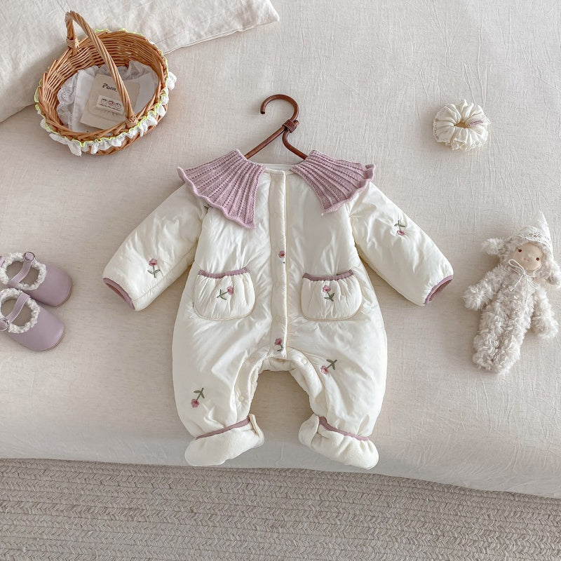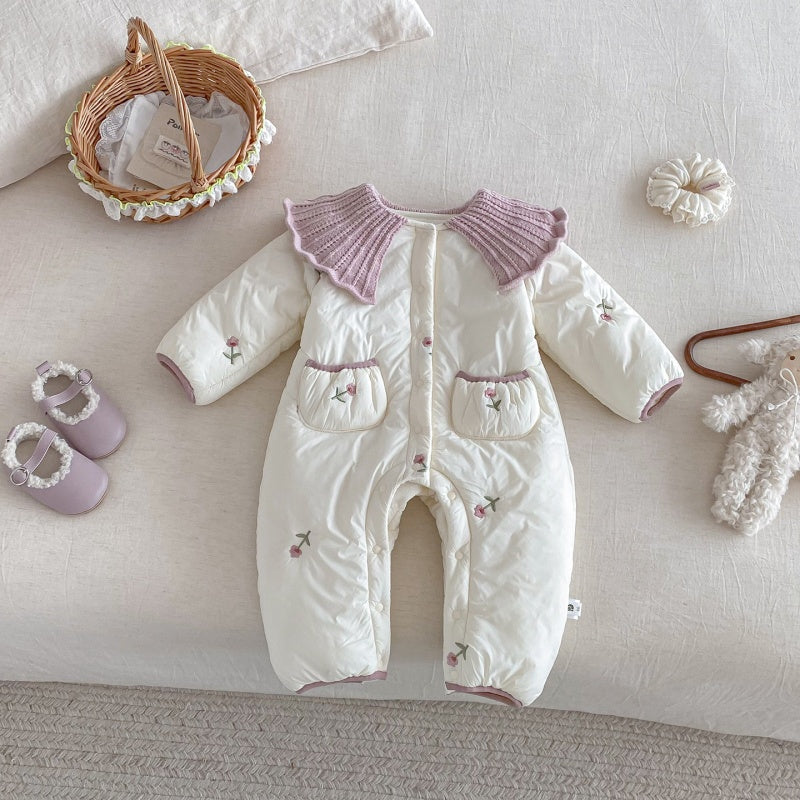 【BABY】冬新作小花柄キルティングニット襟あったかカバーオールSK103103