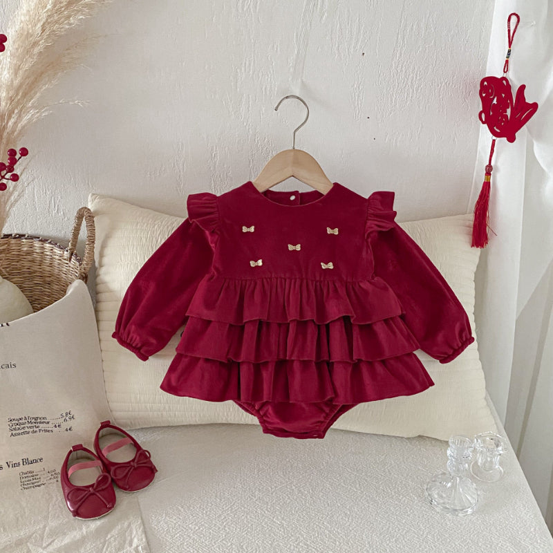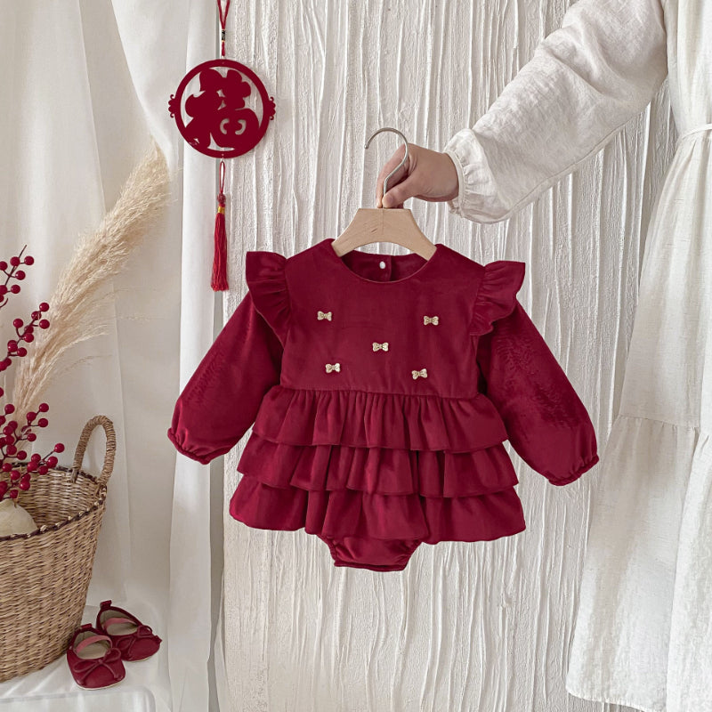【BABY】冬新作蝶結びティアードカバーオールスカートSK102708