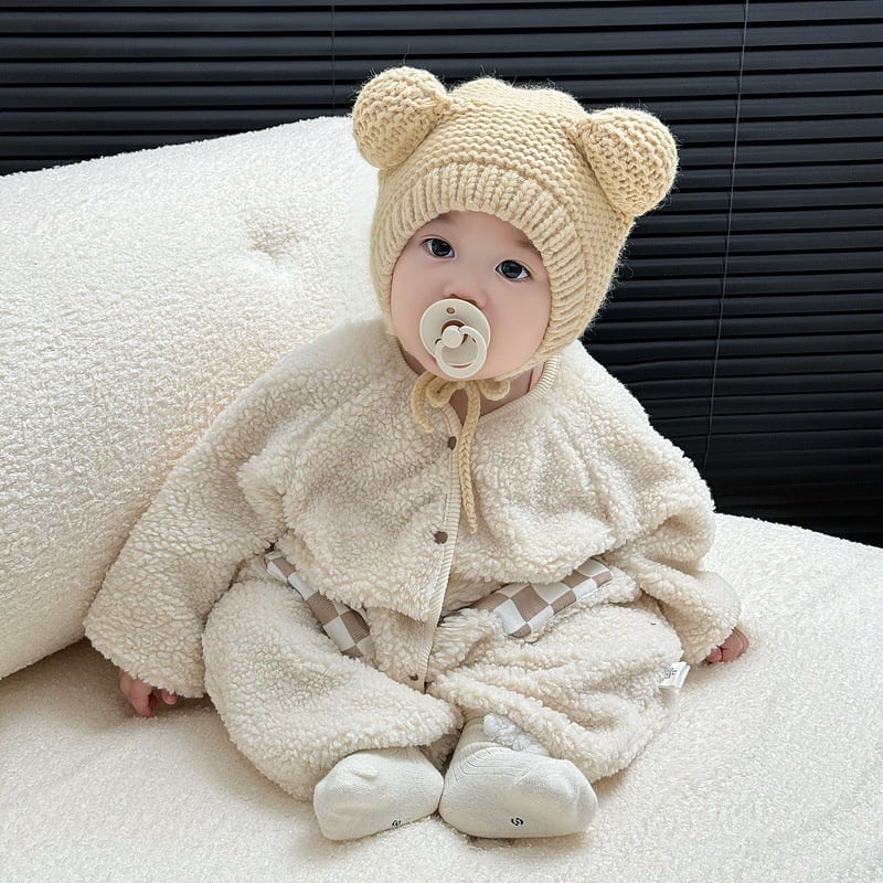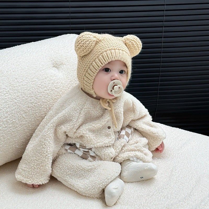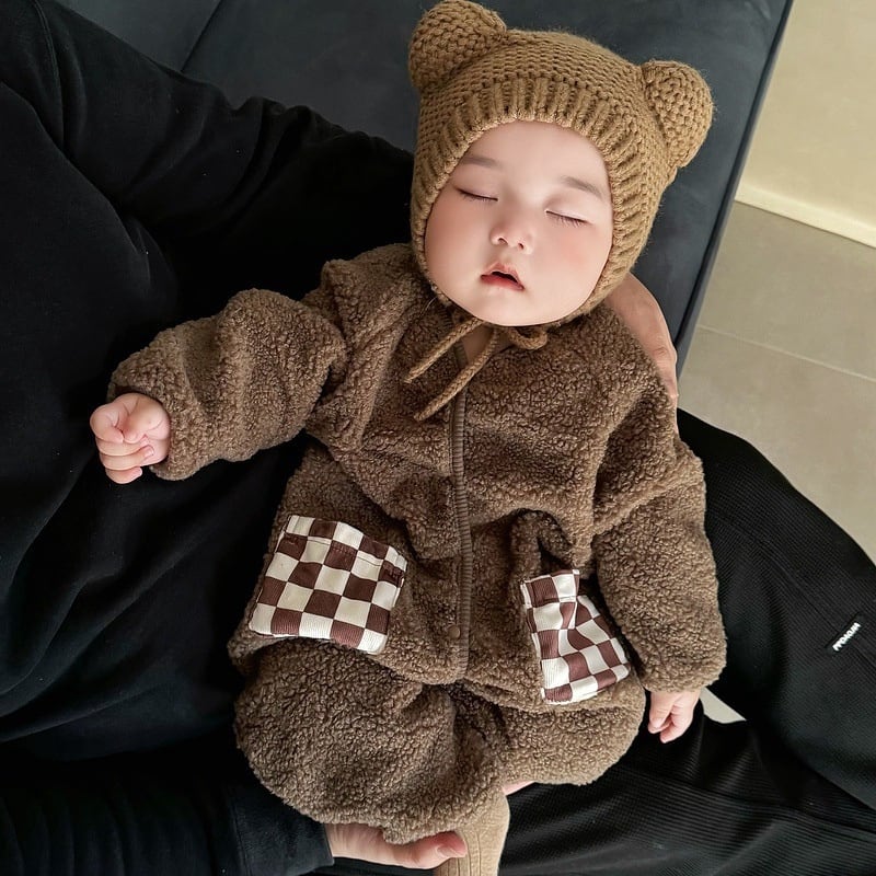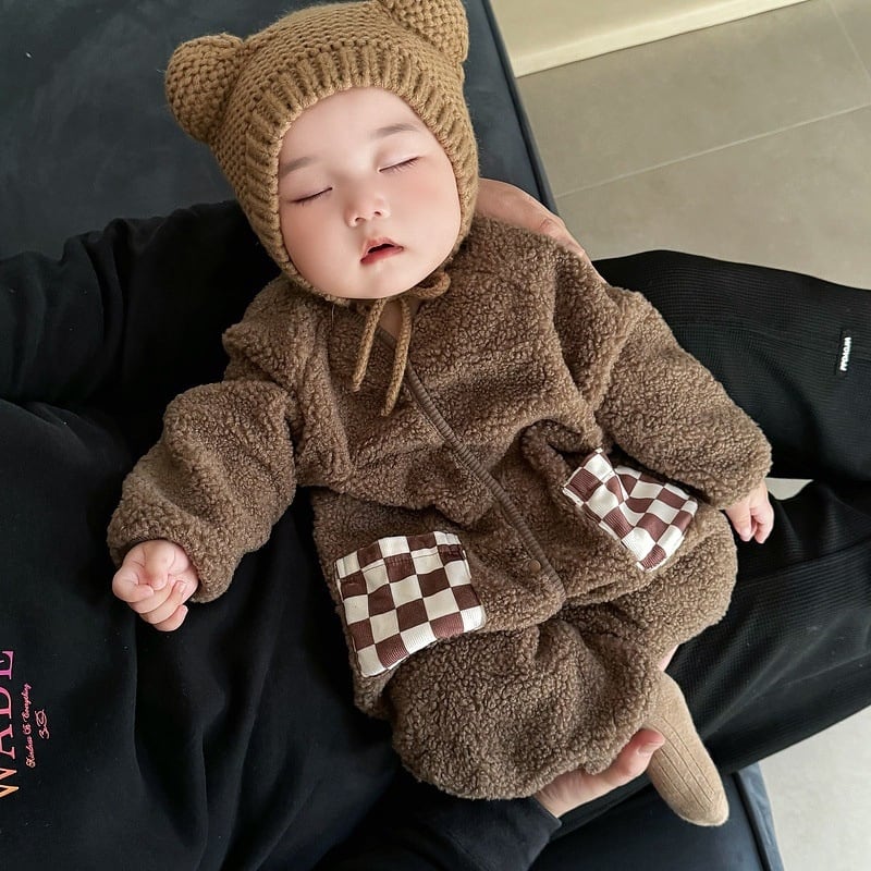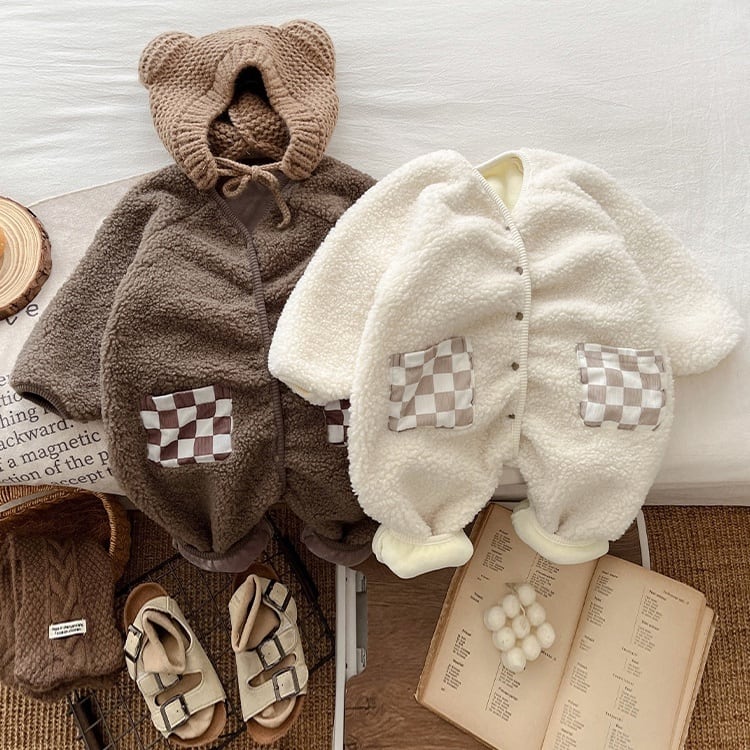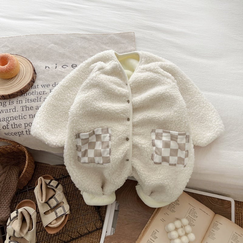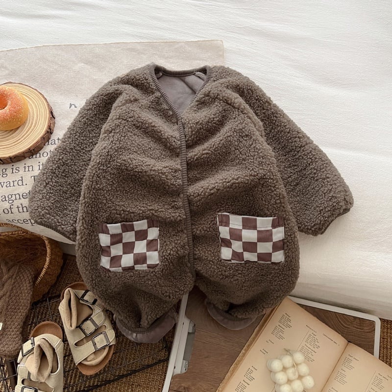 【BABY】冬新作 もこもこチェックポケットロンパースSK11366