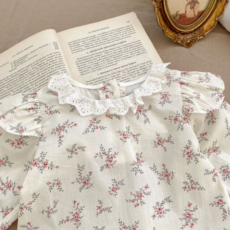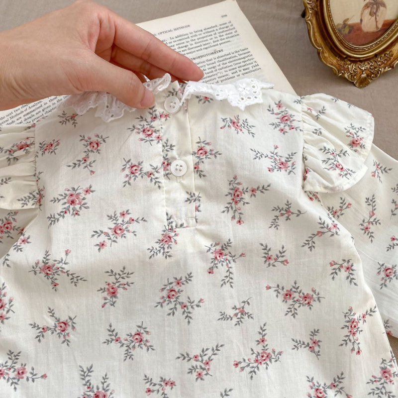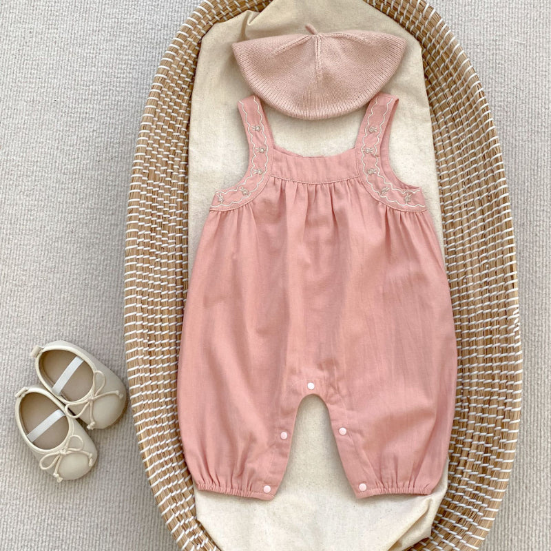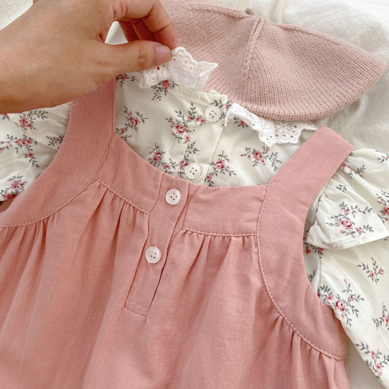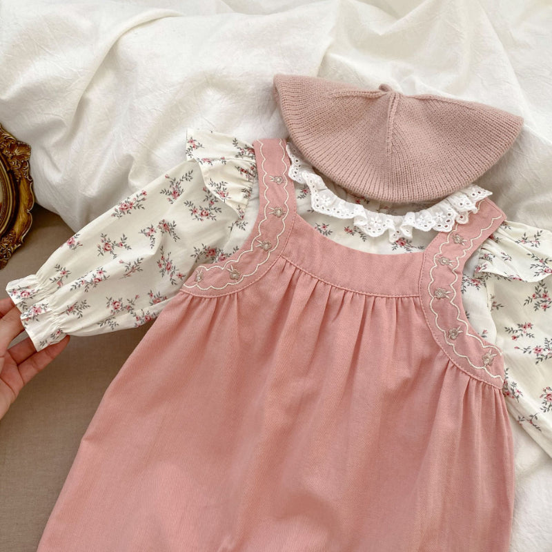 【BABY】刺繍入りオーバーオール、花柄トップスSKO70724