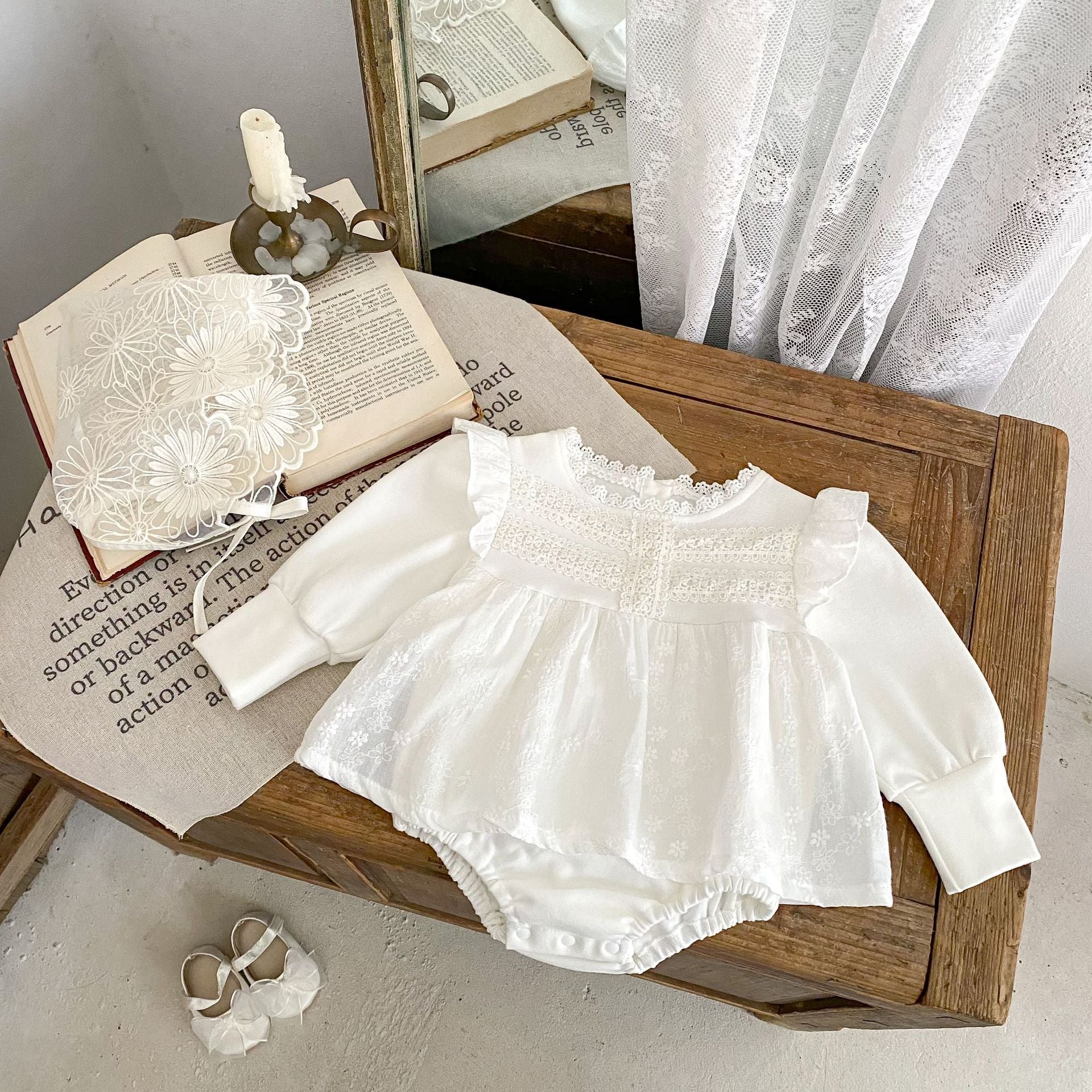 BABY】刺繡プリンセスレースワンピース風ロンパースSK060607
