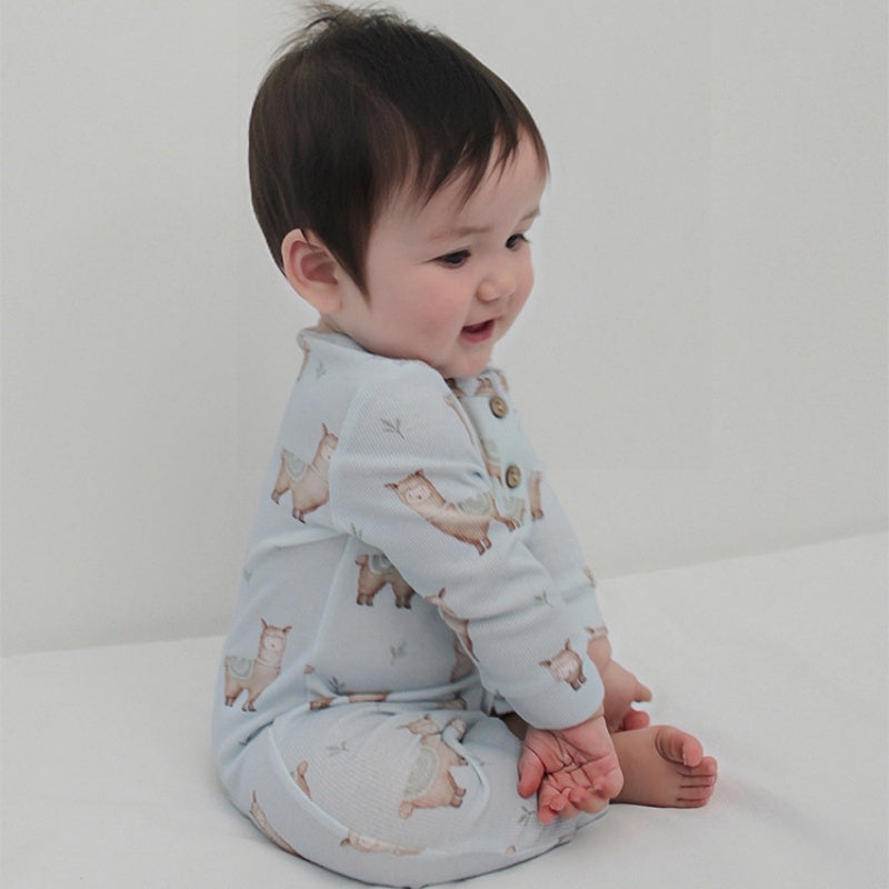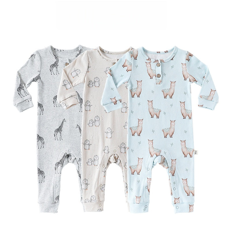 【BABY】北欧風アニマルプリント長袖ロンパースSK101308