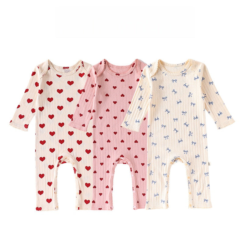 【BABY】北欧風ハート、蝶結びカバーオールSK101310