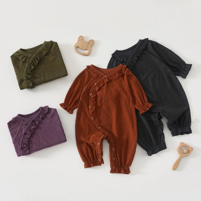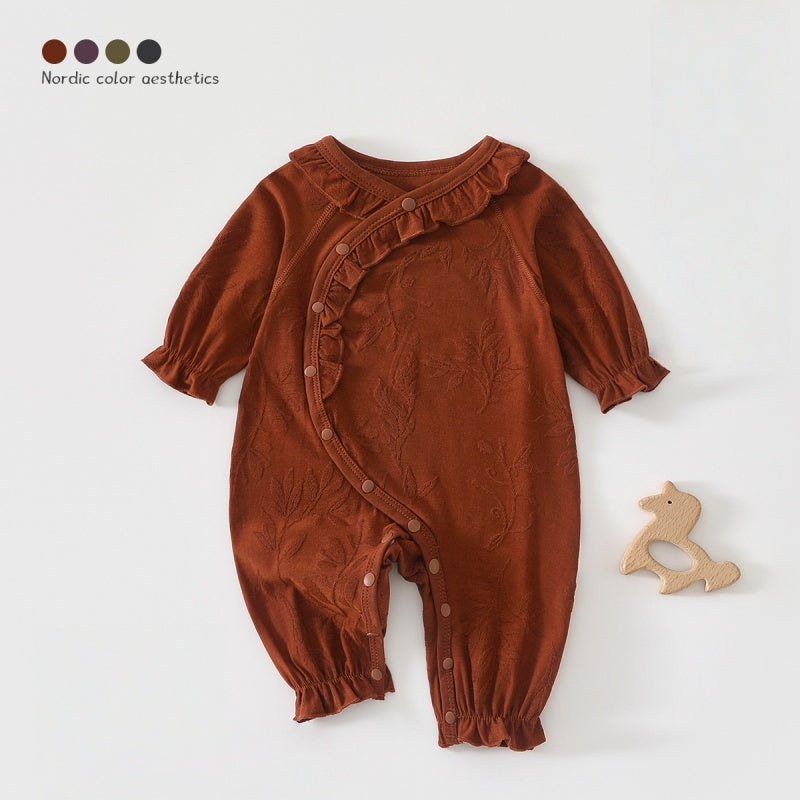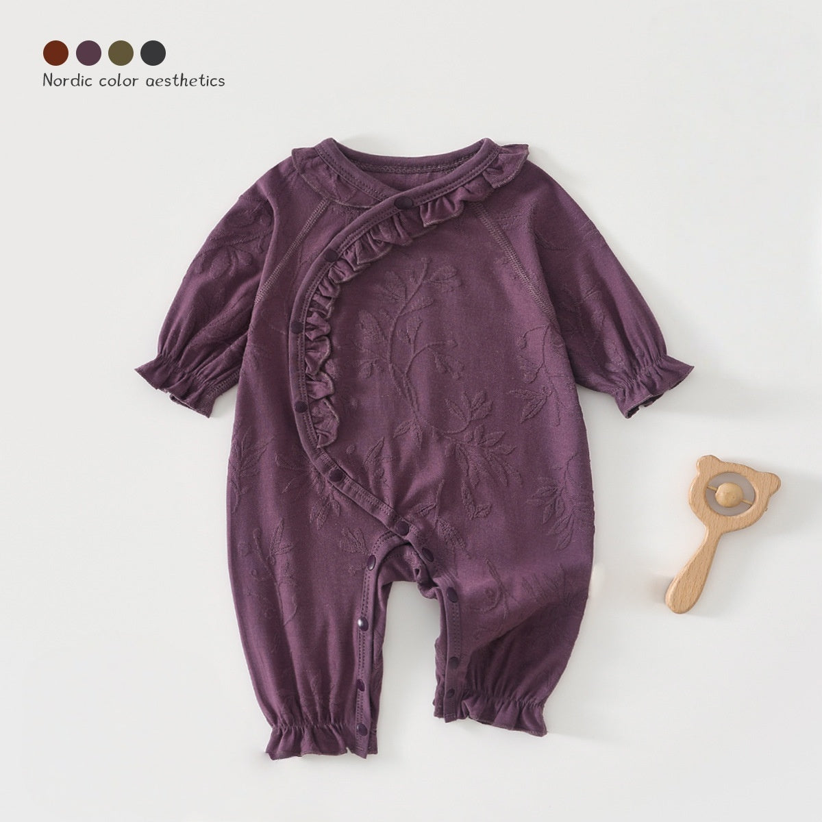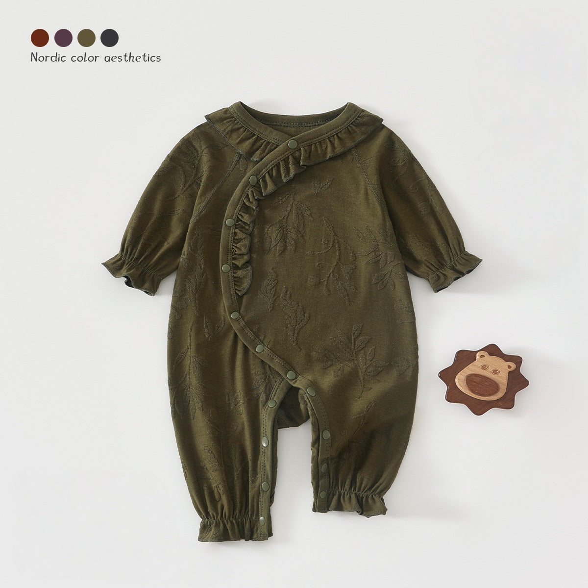 【BABY】北欧風リーフジャカードやわらかカバーオールSK102305