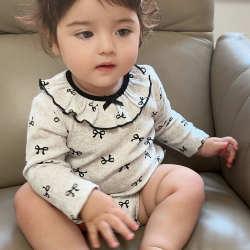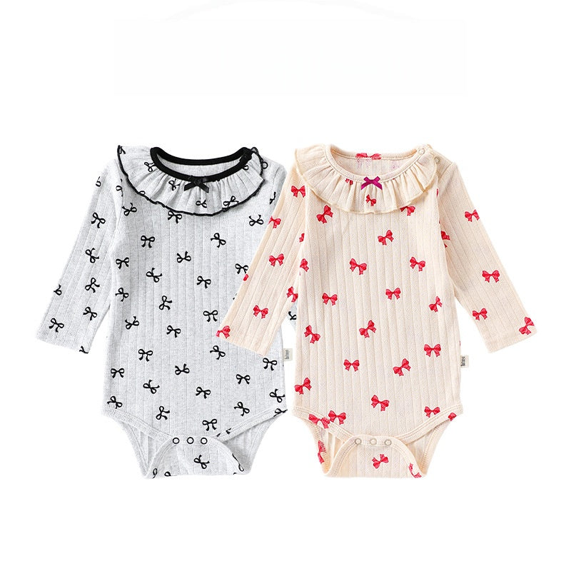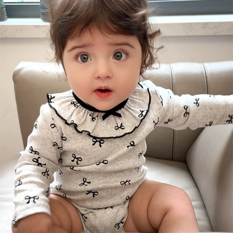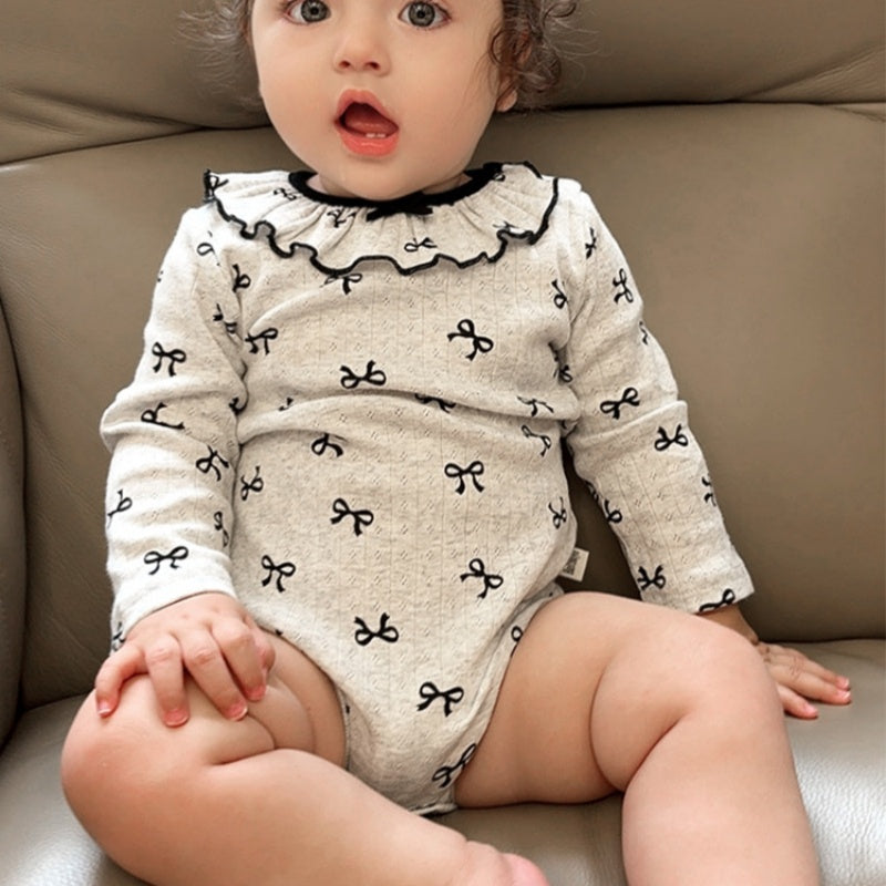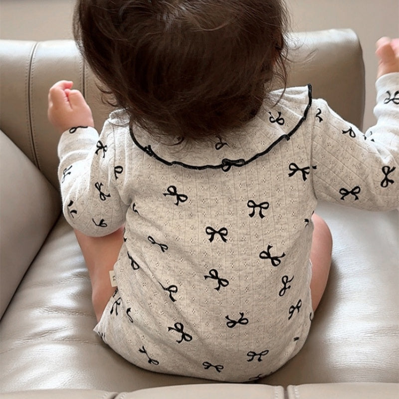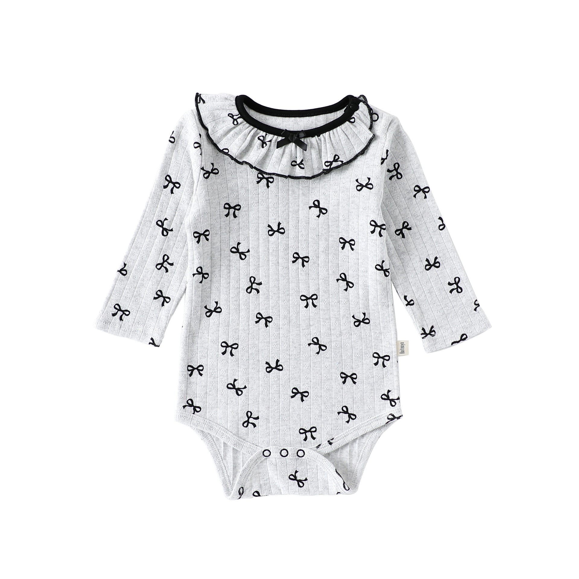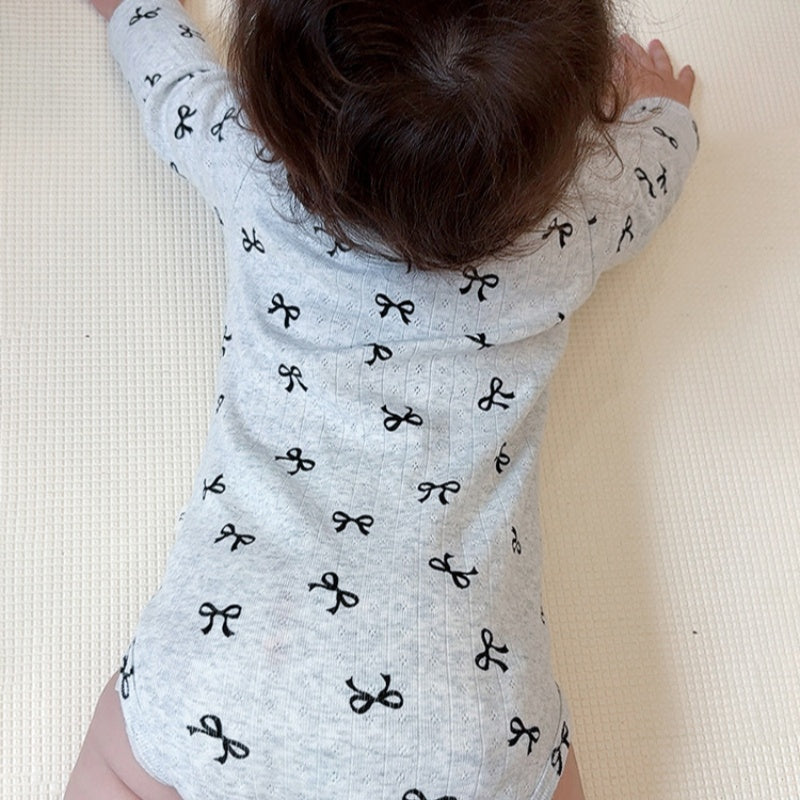 【BABY】北欧風蝶結びプリントロンパースSK101304