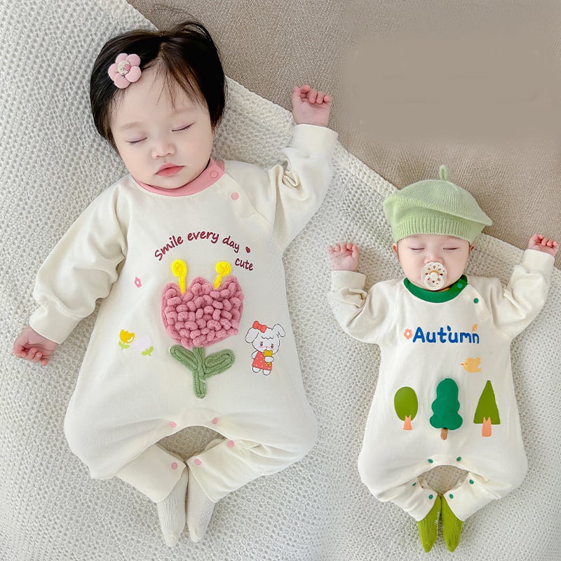 【BABY】可愛いツリー、チューリップ柄ロンパースSK051607