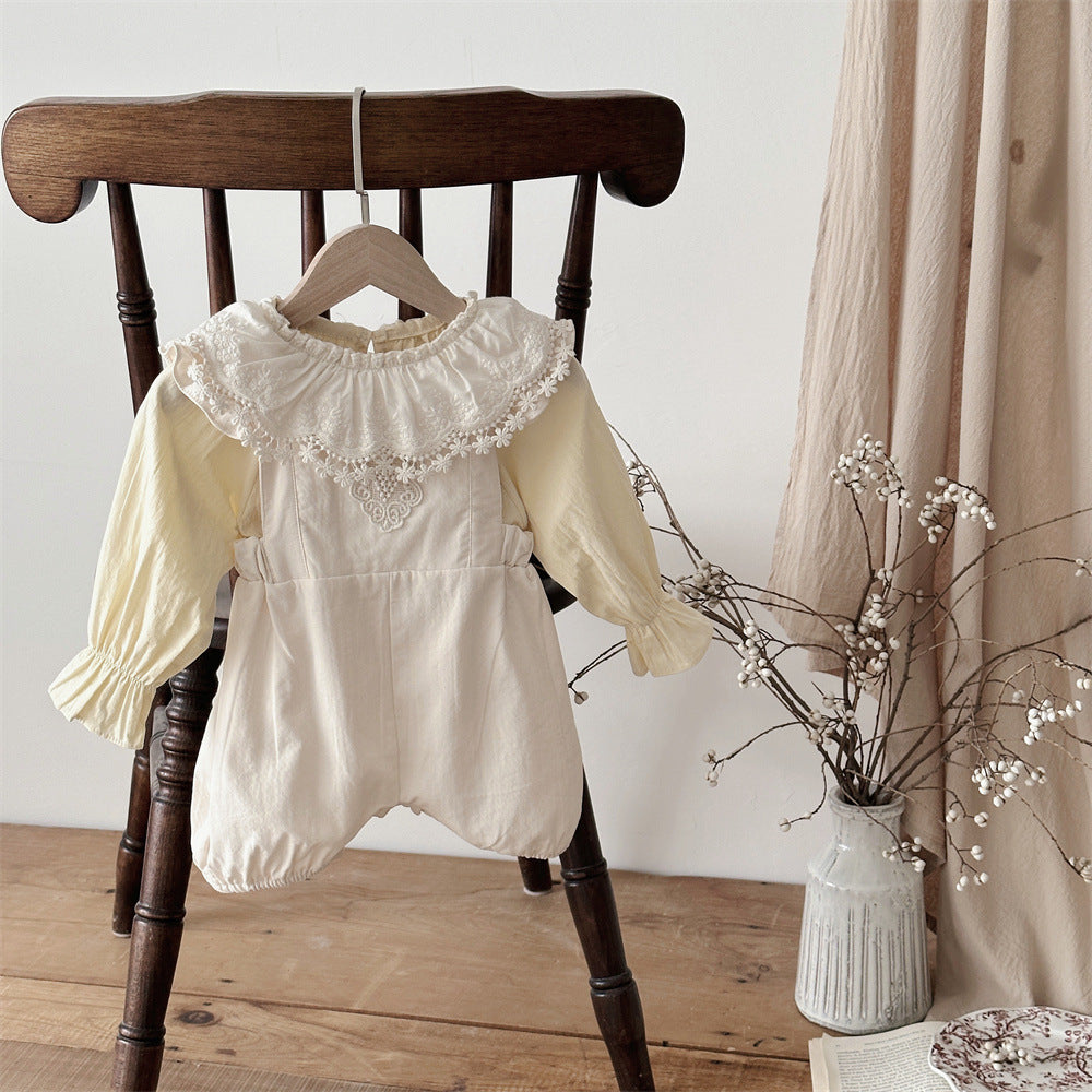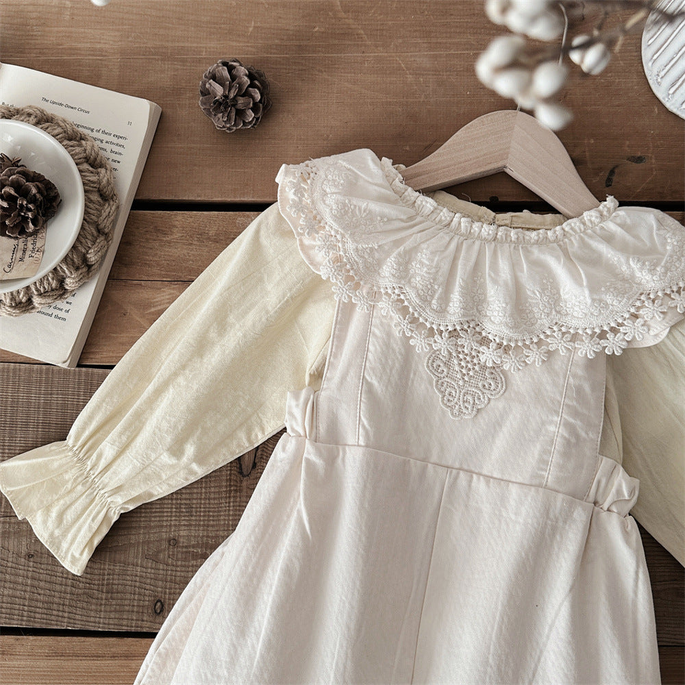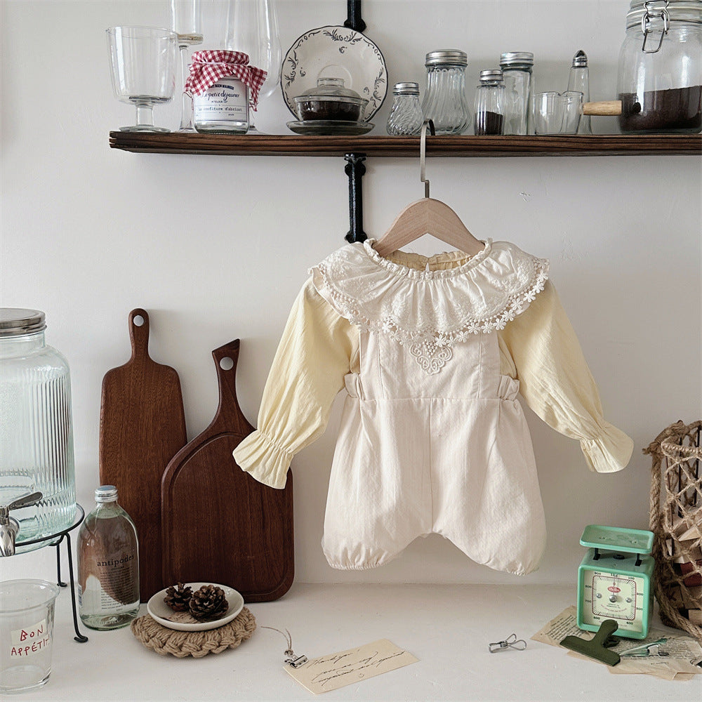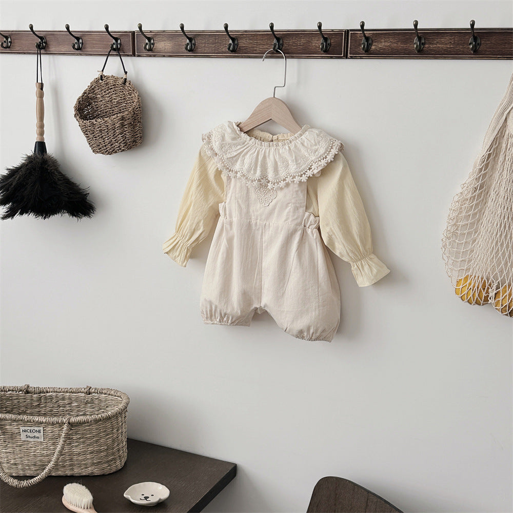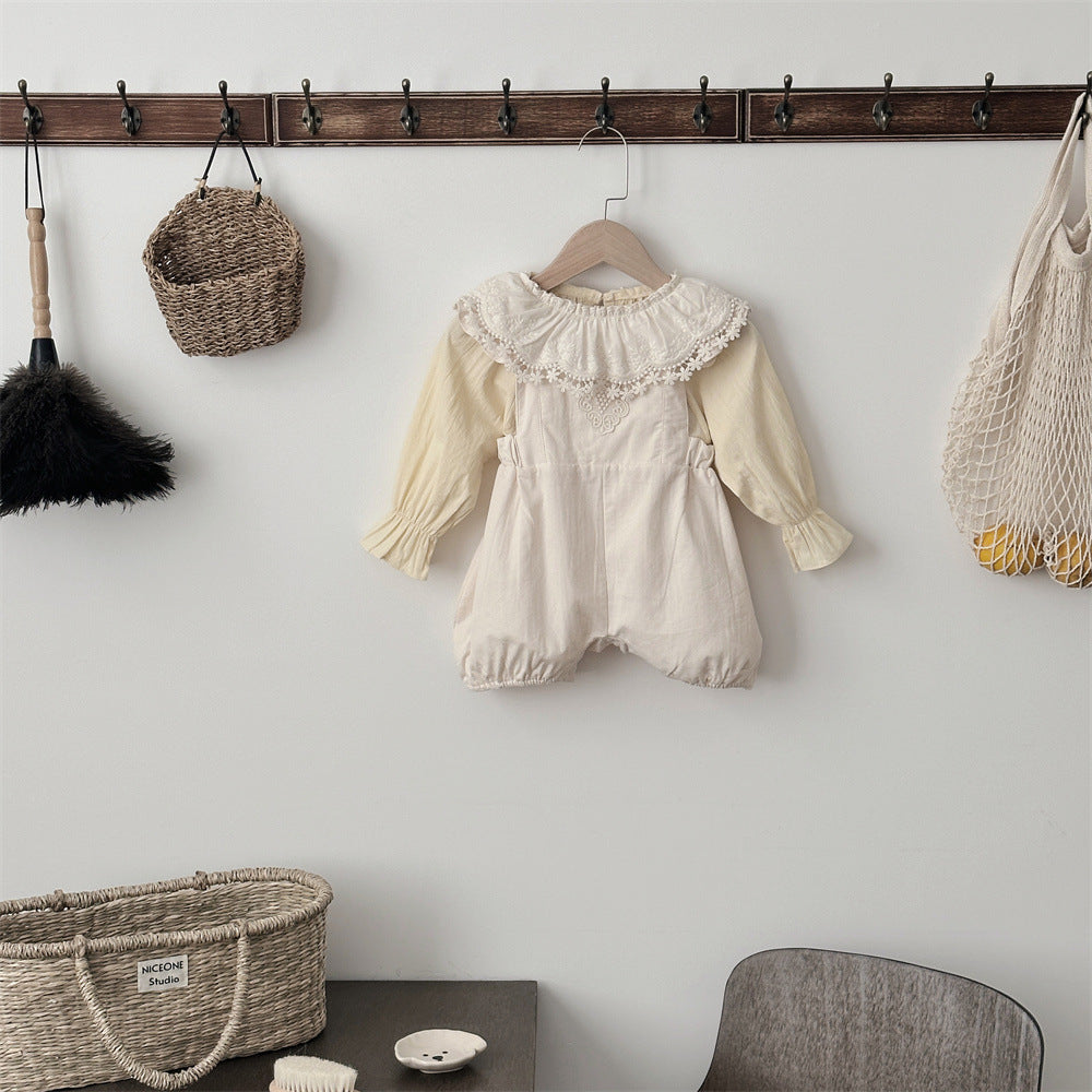 【BABY】可愛いレース無地サロペット、シャツSK031603