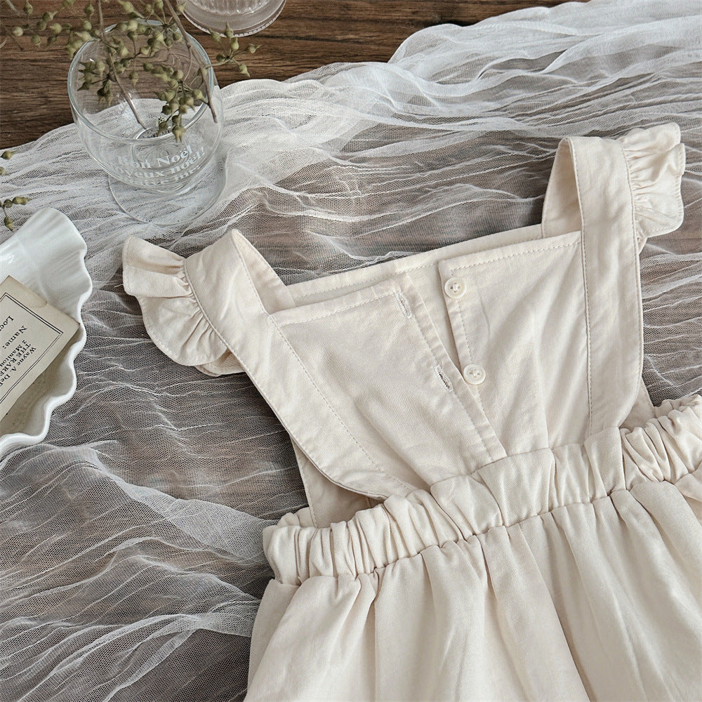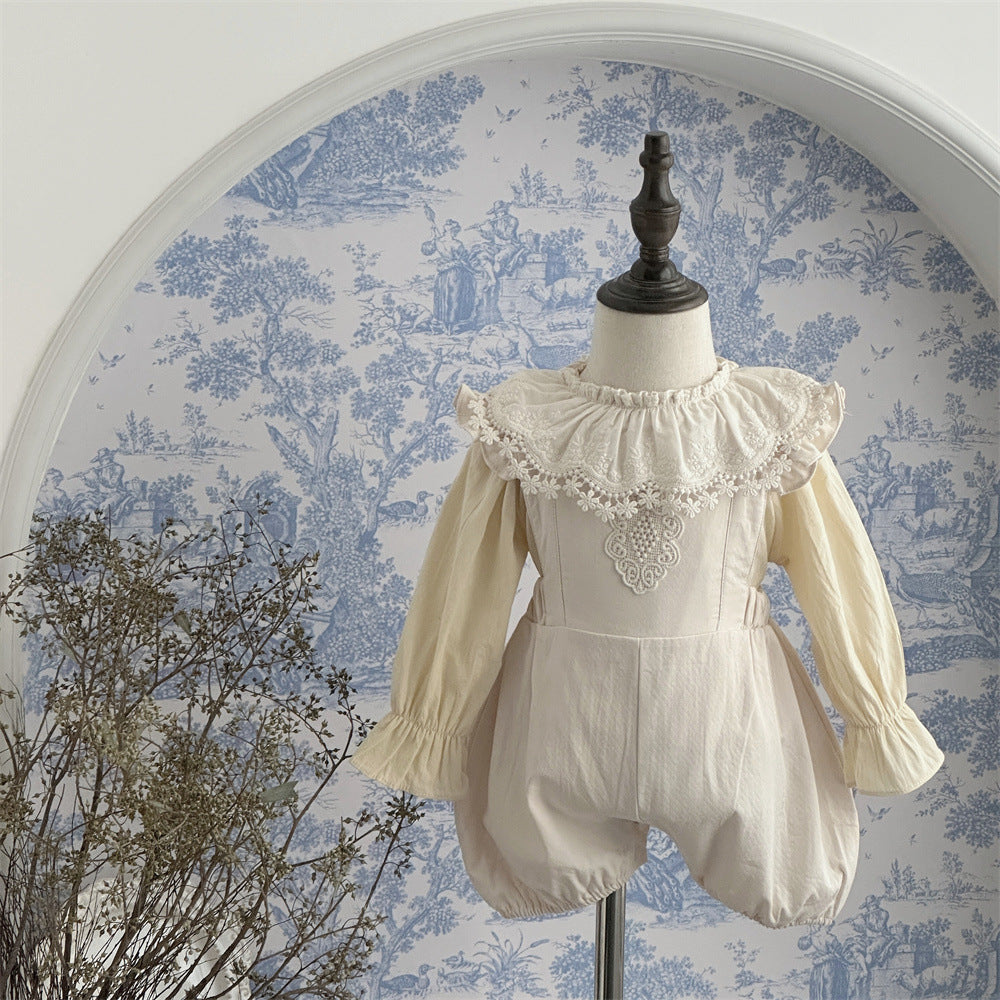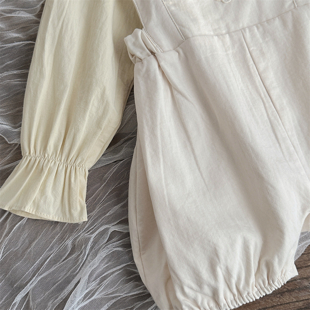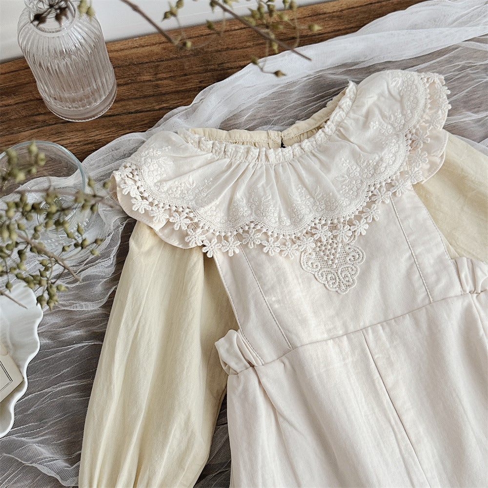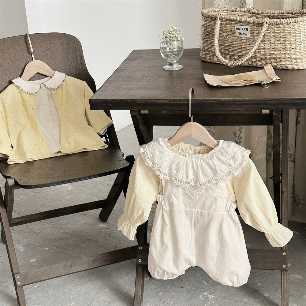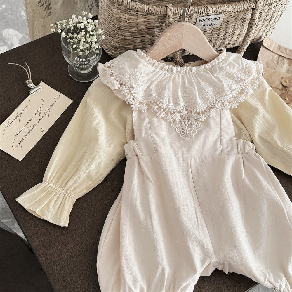 【BABY】可愛いレース無地サロペット、シャツSK031603