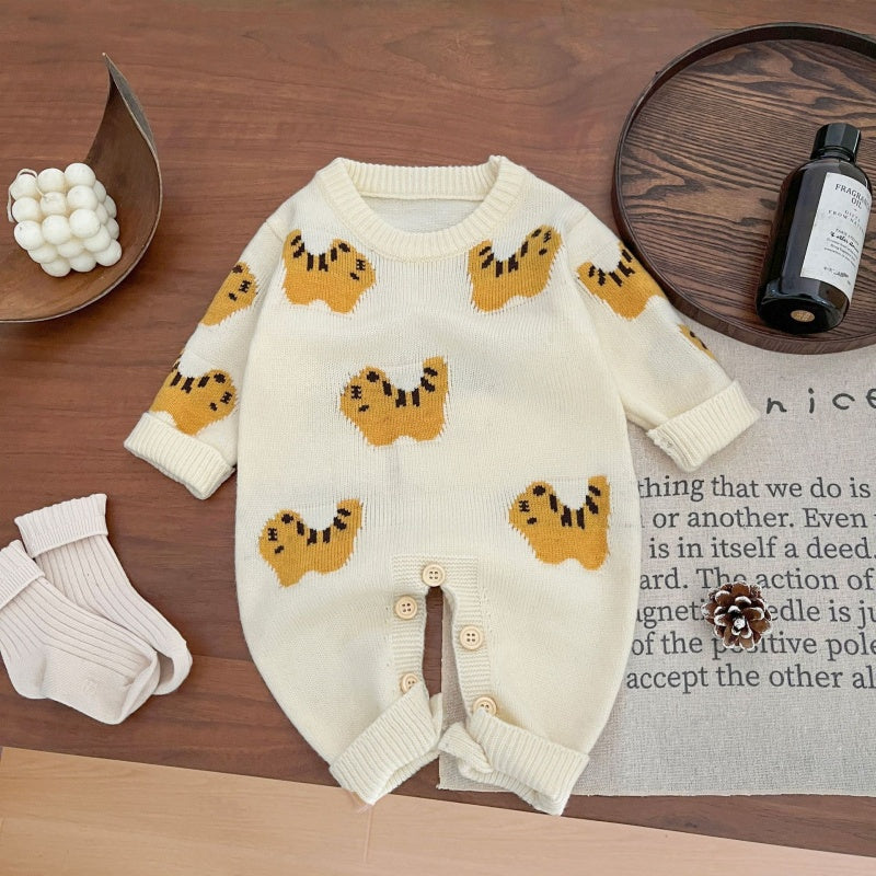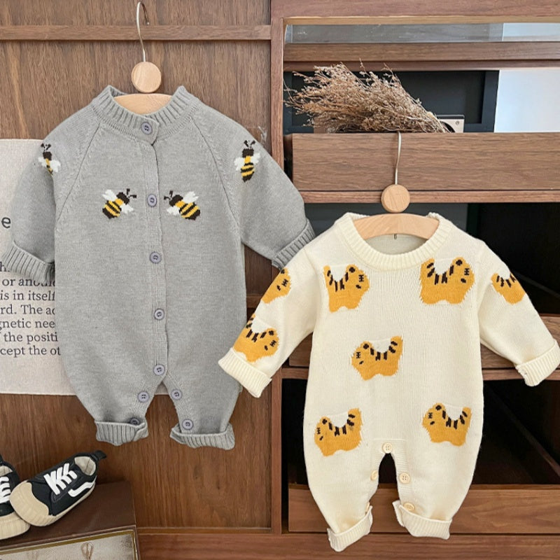 【BABY】可愛アニマル柄ニットロンパースSK031303