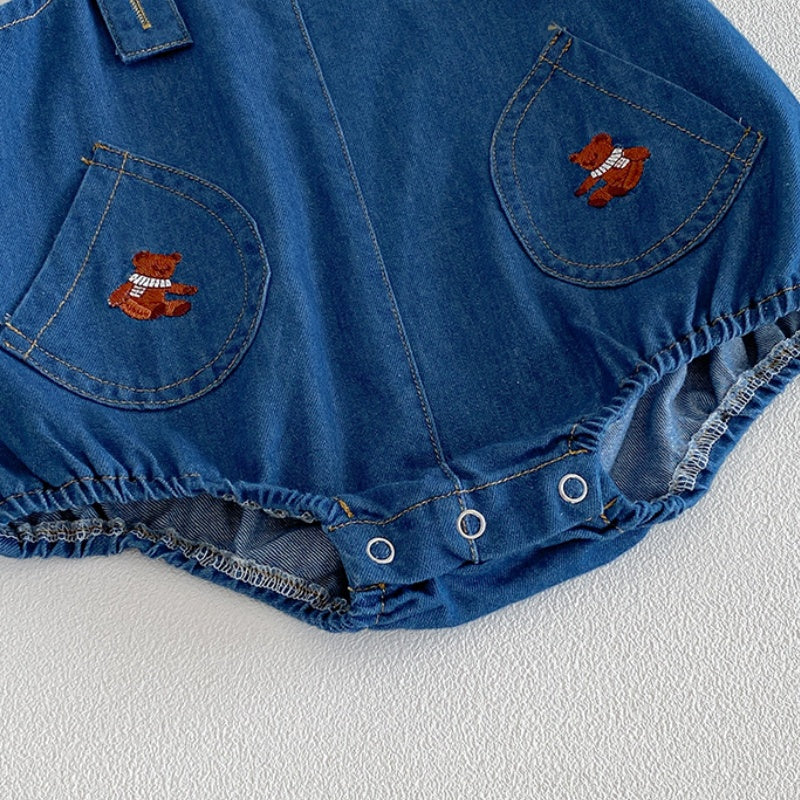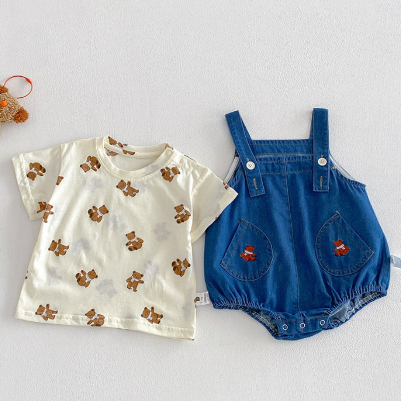 【BABY】夏新作くま刺繍デニムロンパース&くまTシャツSK104509