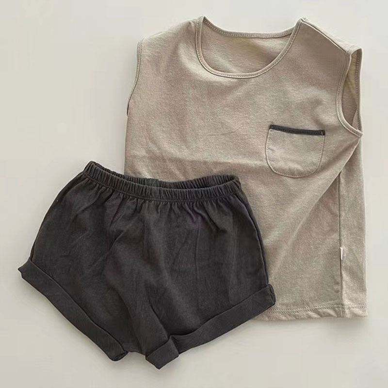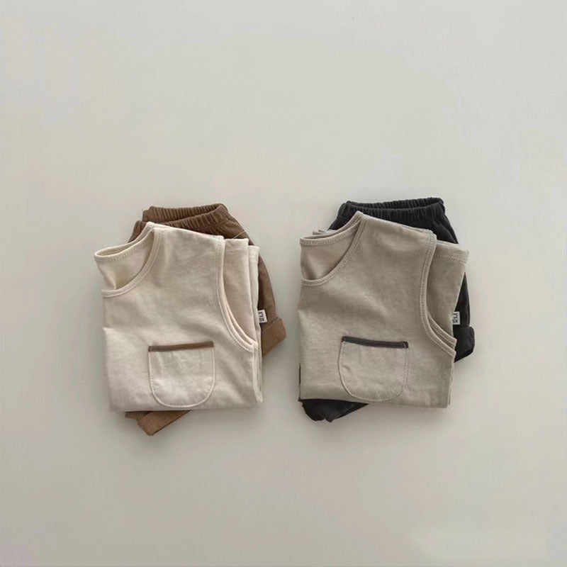 【BABY】夏新作ノーカラークールネックセットアップ 全2色SK062915