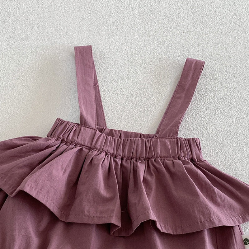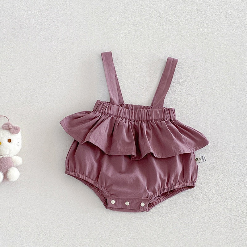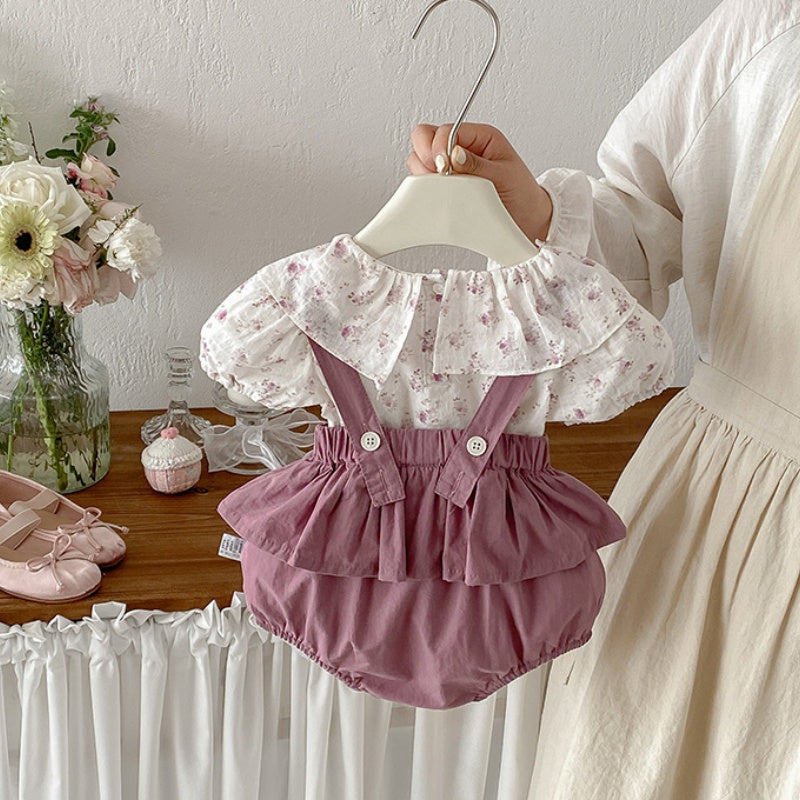 【BABY】夏新作フリル襟小花柄ブラウス&サロペットロンパースSK104508