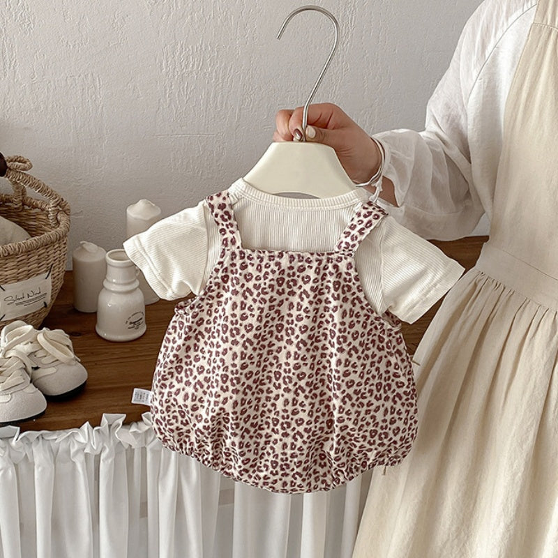 【BABY】夏新作レオパード柄サロペットロンパース&リブTシャツSK104513