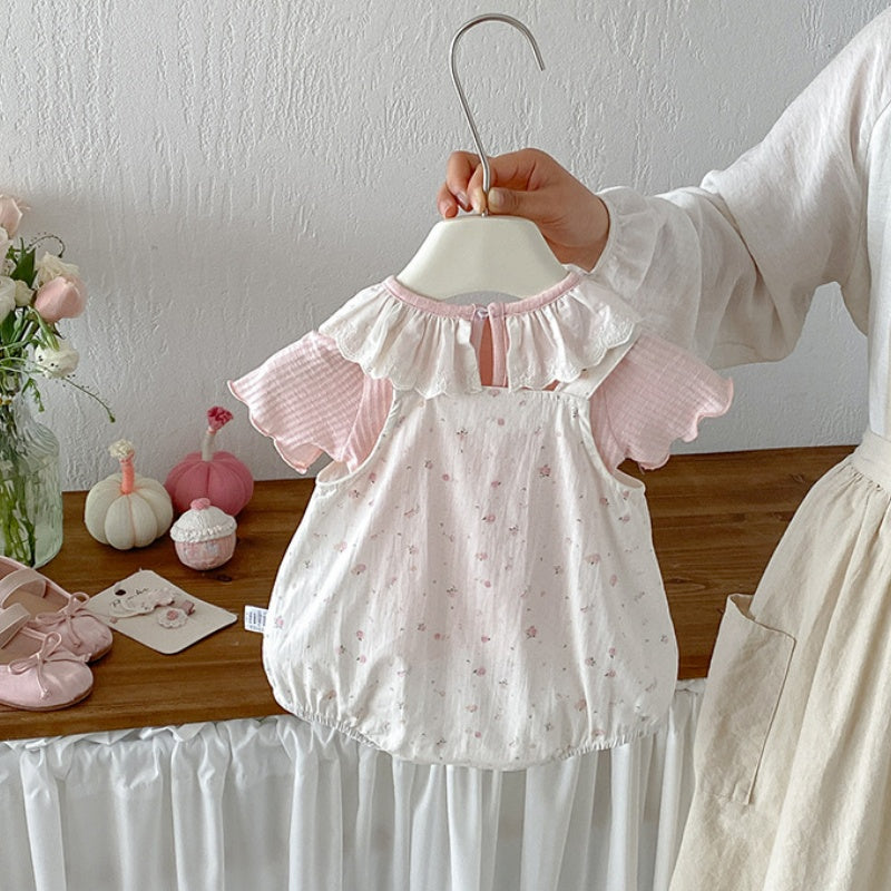【BABY】夏新作小花柄サロペットロンパース&レース襟TシャツSK104504