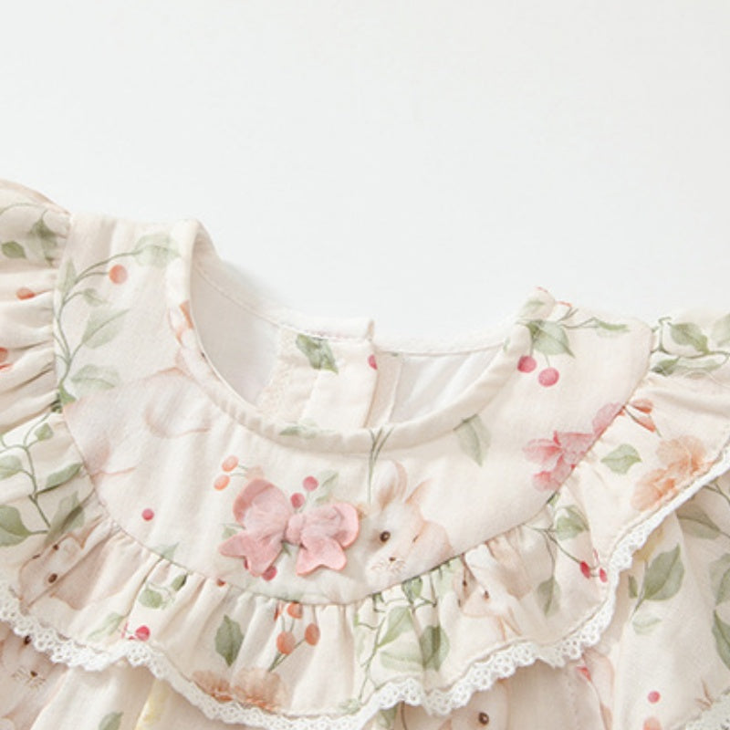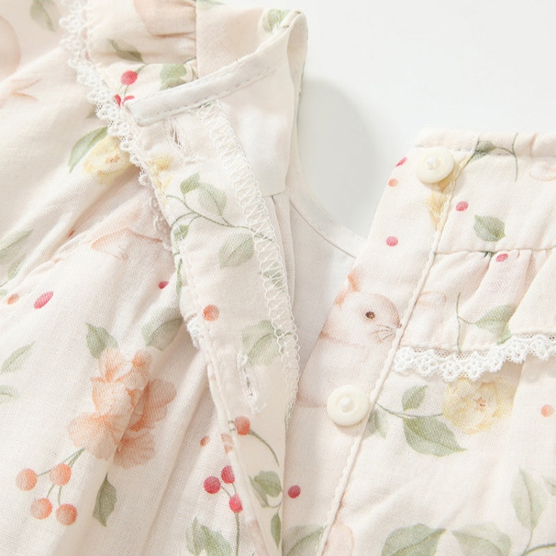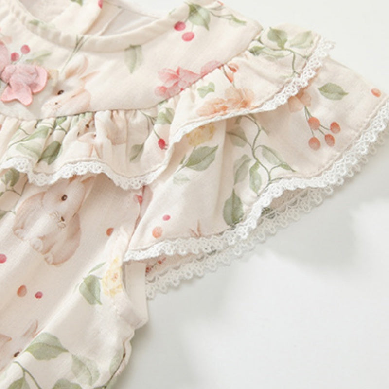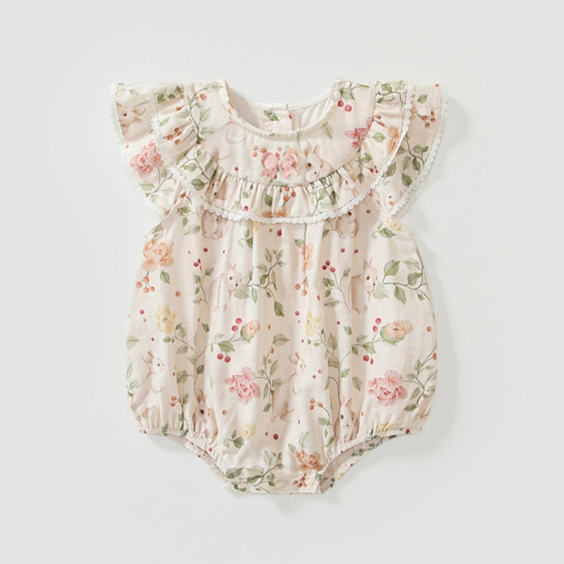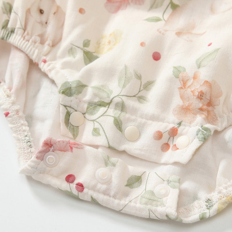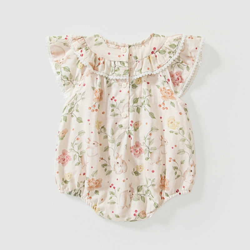 【BABY】夏新作 うさぎプリントフリル袖ロンパースSK091904