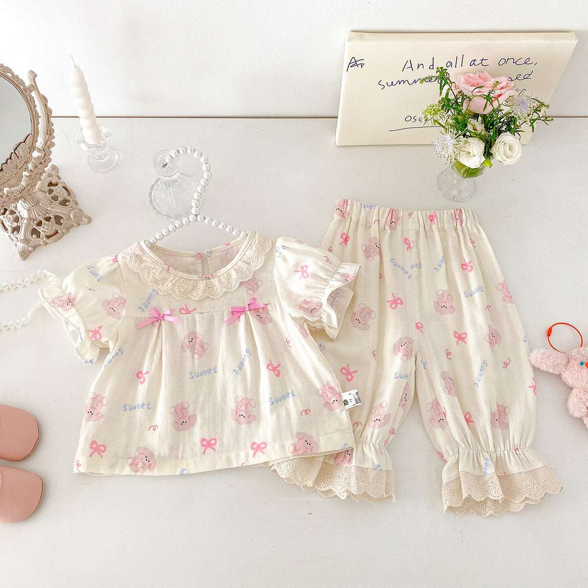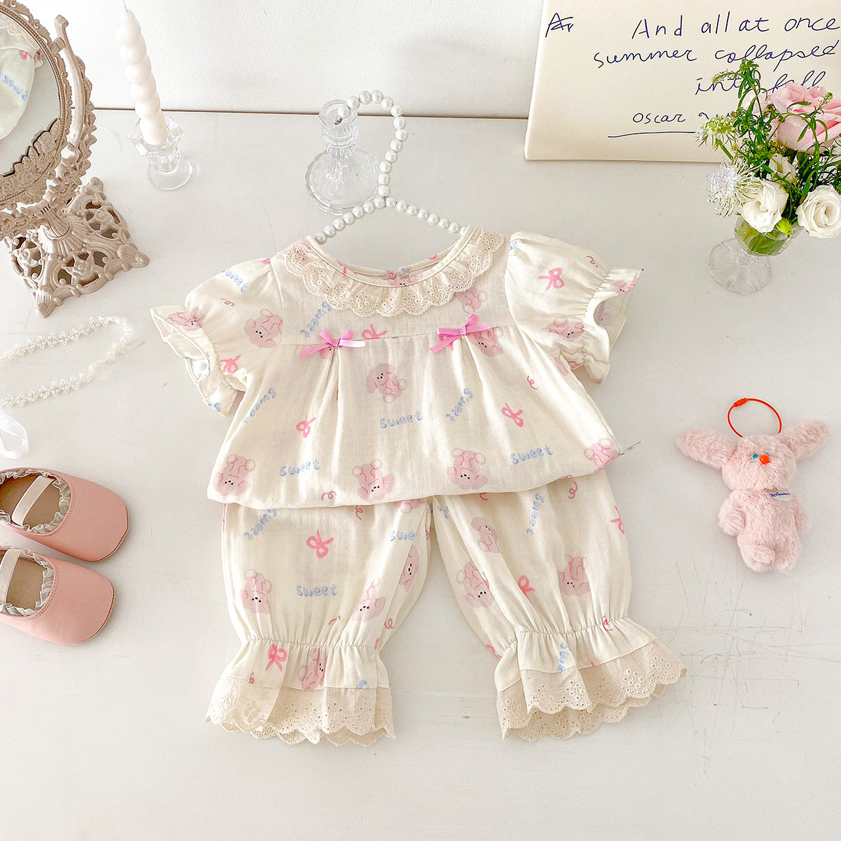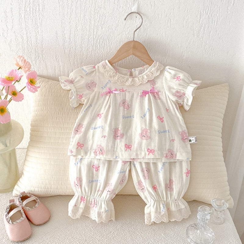 【BABY】夏新作 うさぎ蝶結びプリントセットアップSK092623