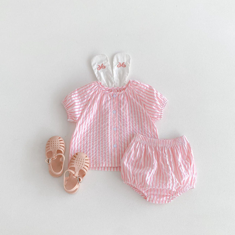 【BABY】夏新作 うさ耳ストライプセットアップSK072309