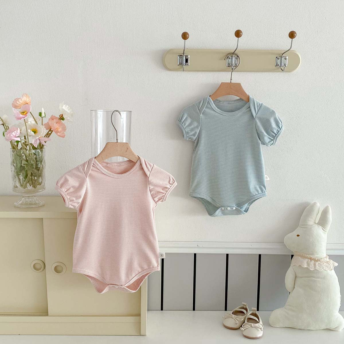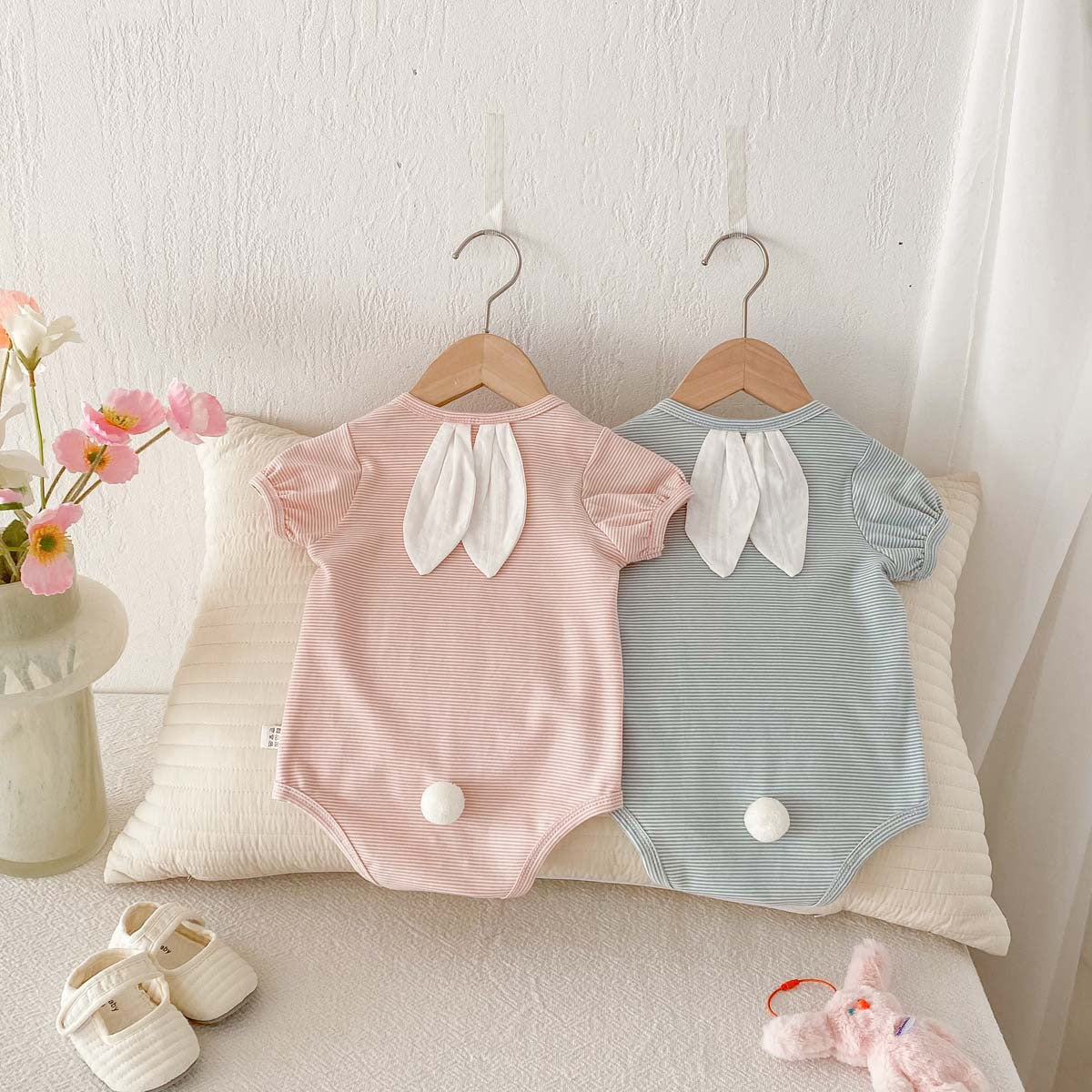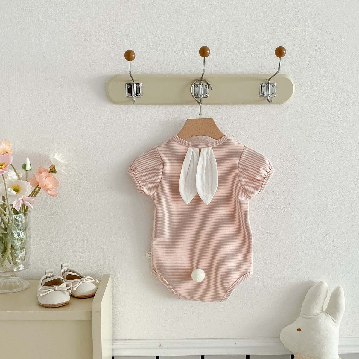 【BABY】夏新作 うさ耳ストライプロンパースSK062719