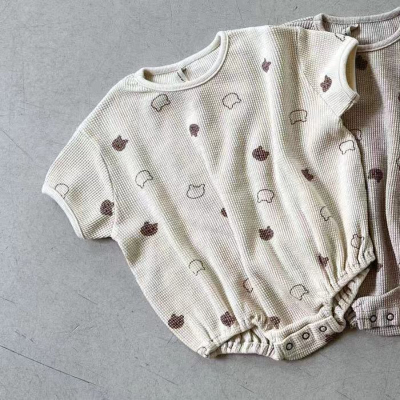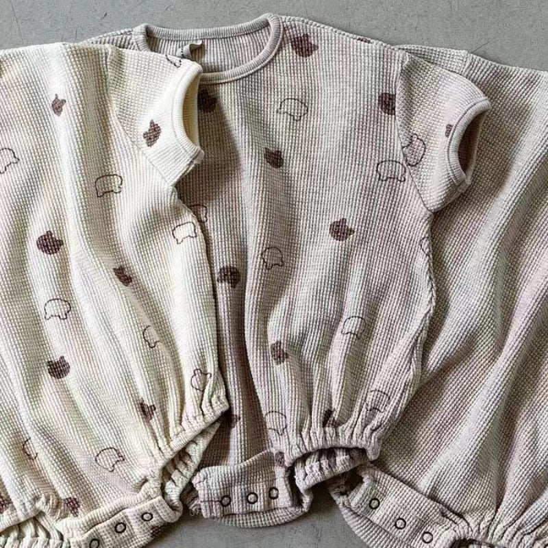 【BABY】夏新作 くまワッフル半袖ロンパースSK092108
