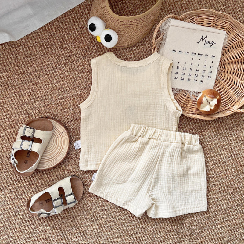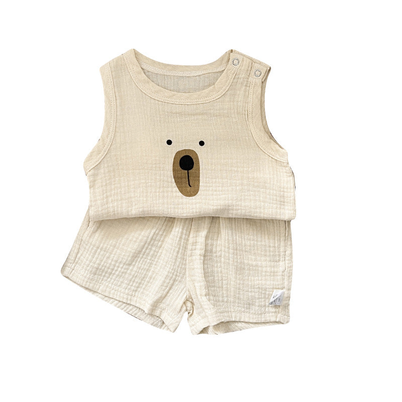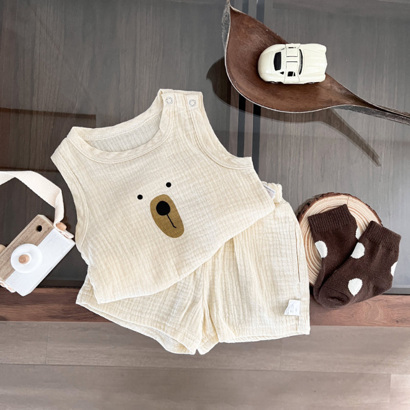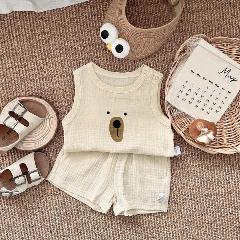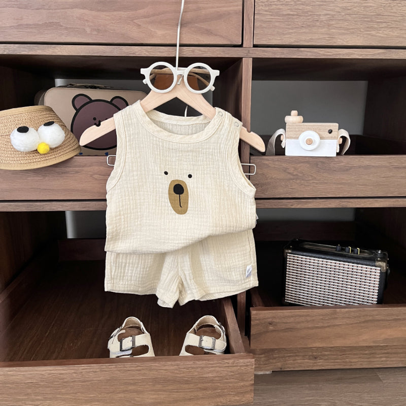 【BABY】夏新作 くま柄コットンノースリーブセットアップSK081519
