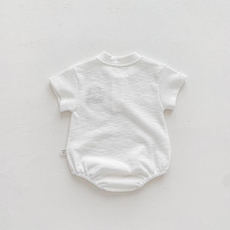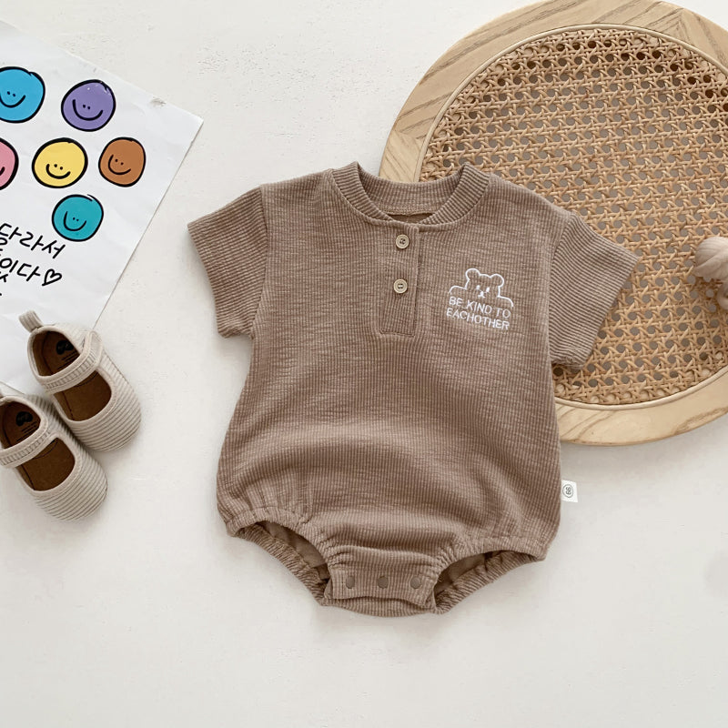 【BABY】夏新作 くま柄リブラウンドネックロンパースSK071015