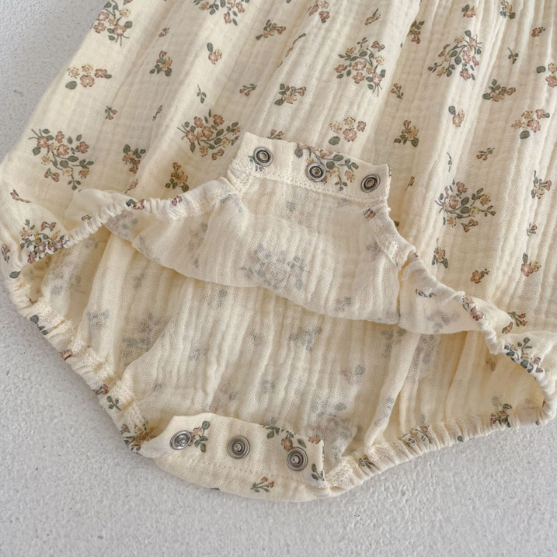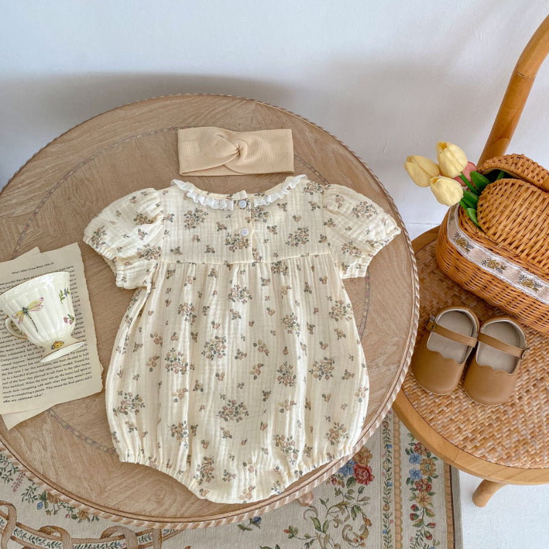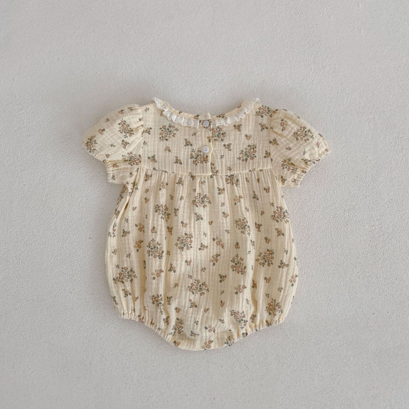 【BABY】夏新作 しわ感コットンフラワーレース襟ロンパースSK071902