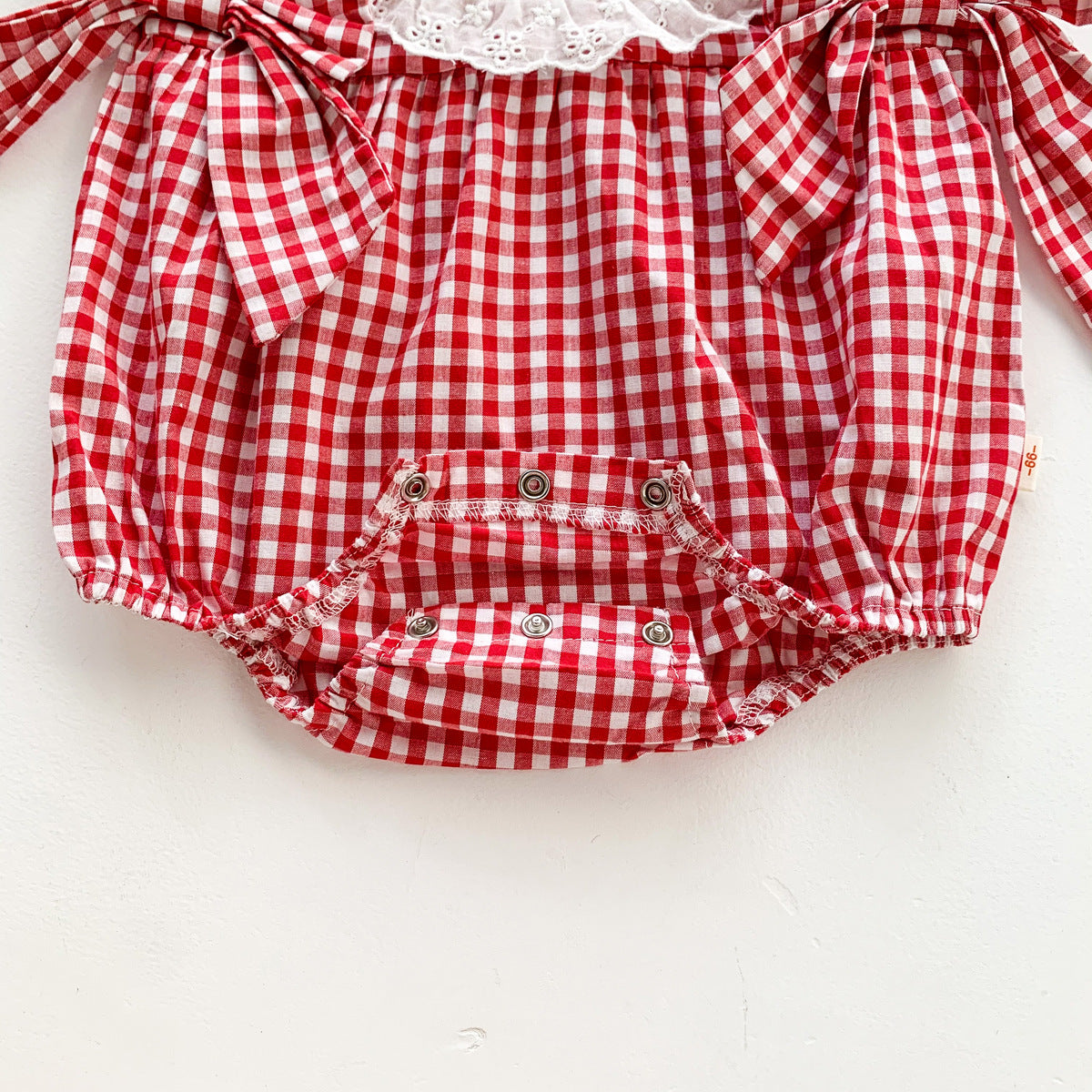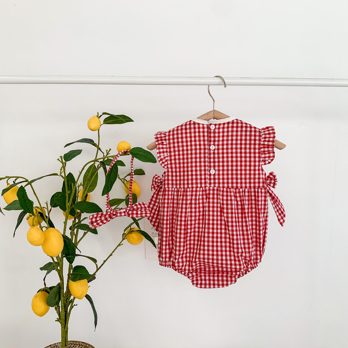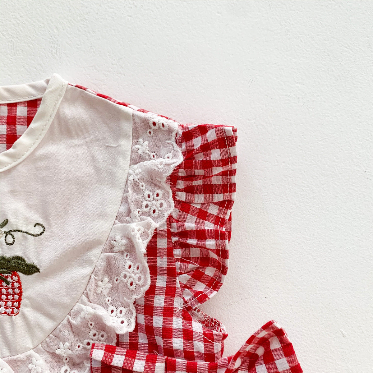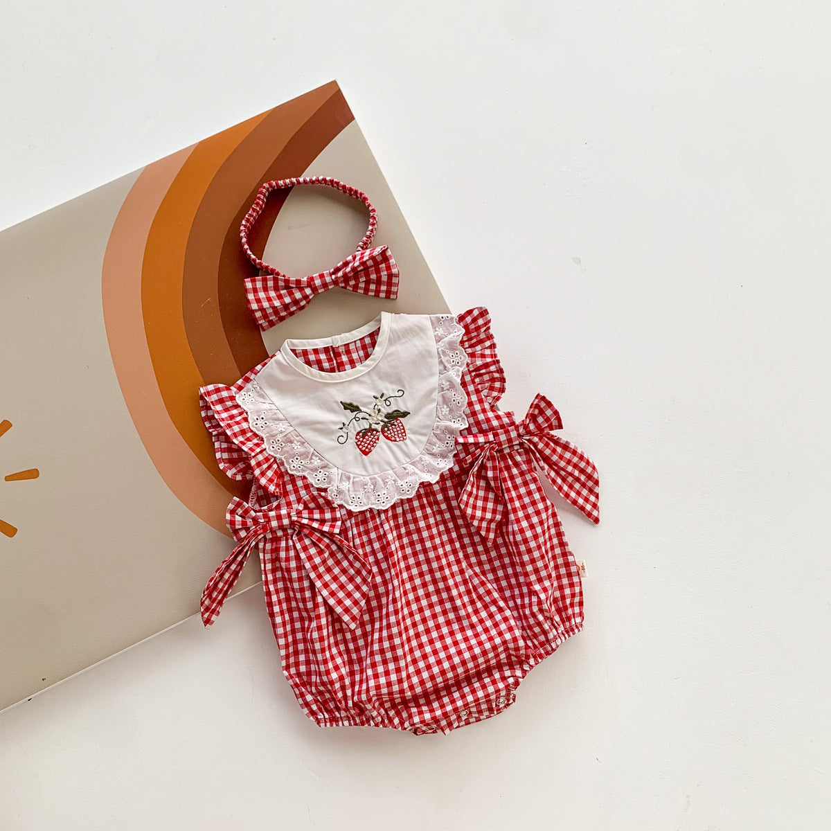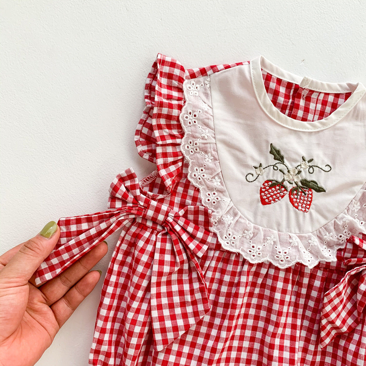 【BABY】夏新作 イチゴ柄チェックロンパースSK062302