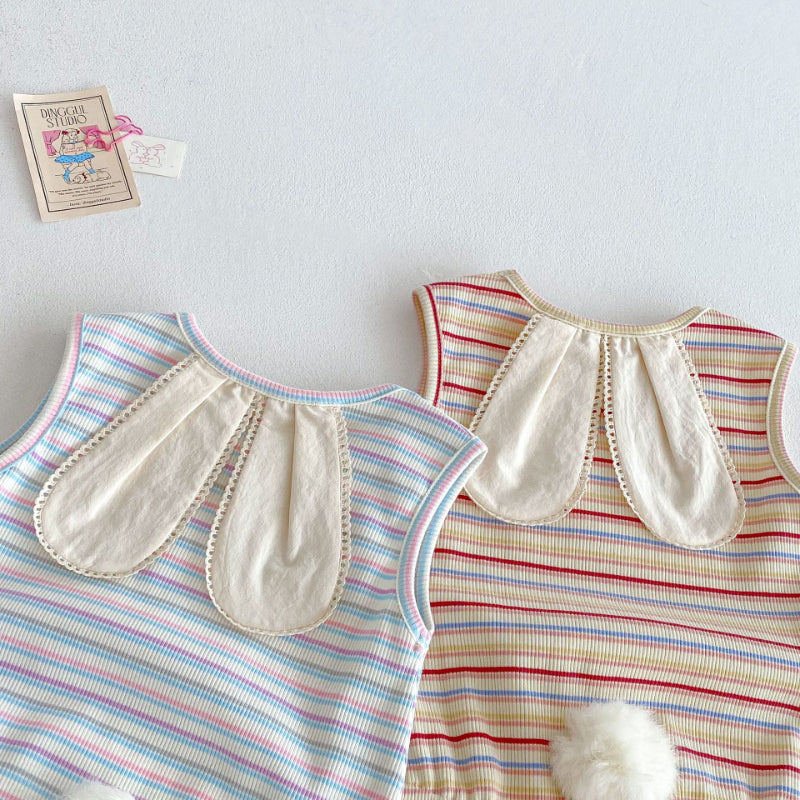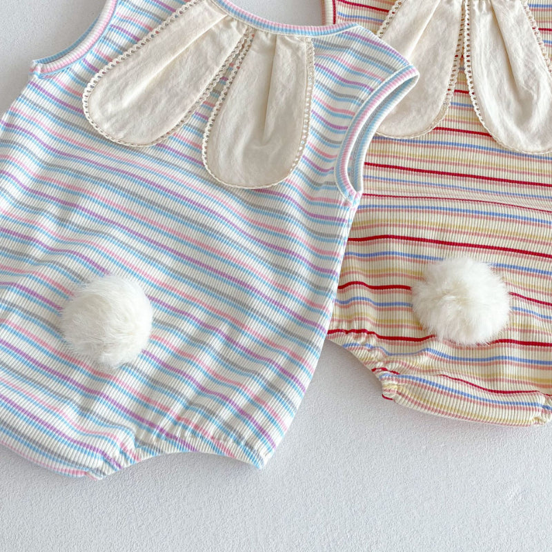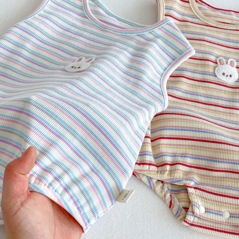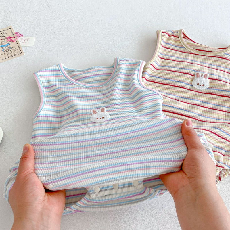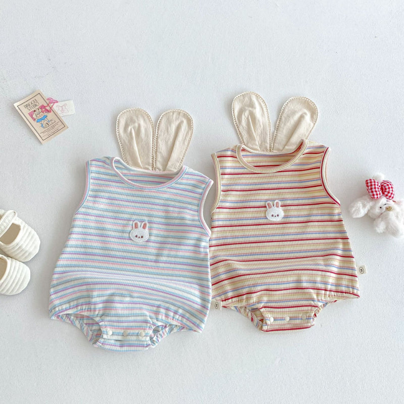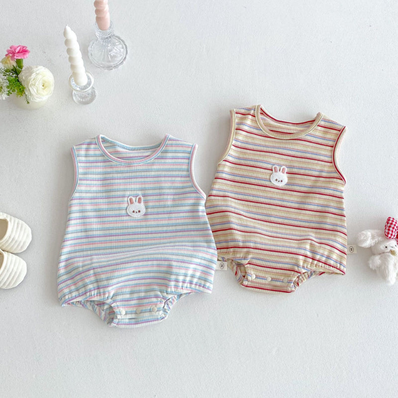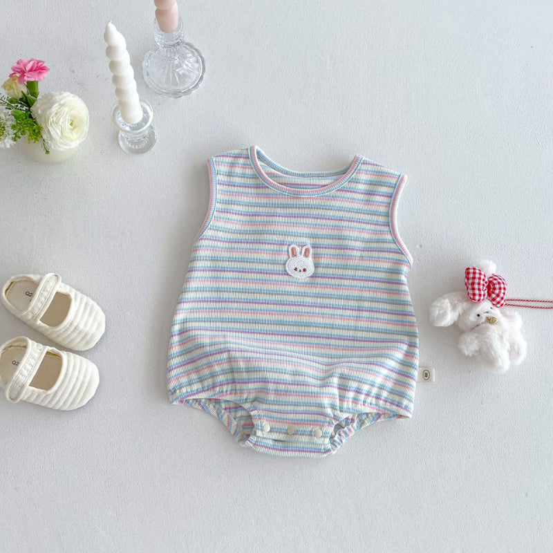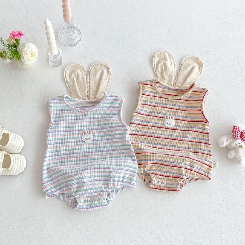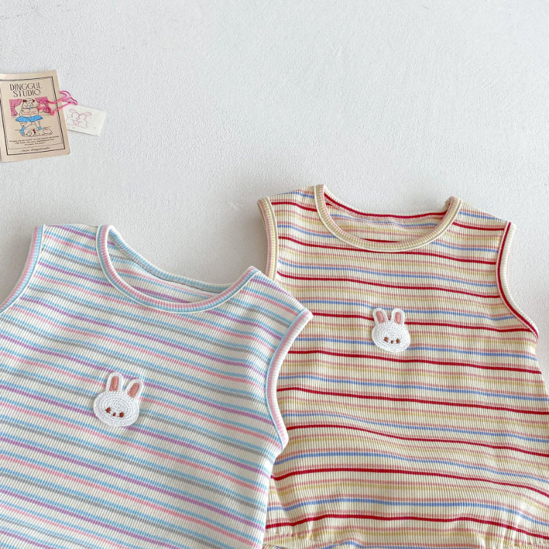 【BABY】夏新作 ウサギボーダーノースリーブロンパースSK072014
