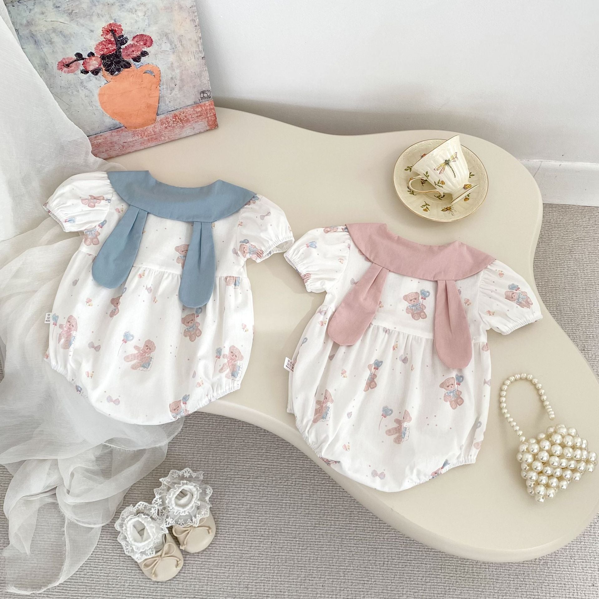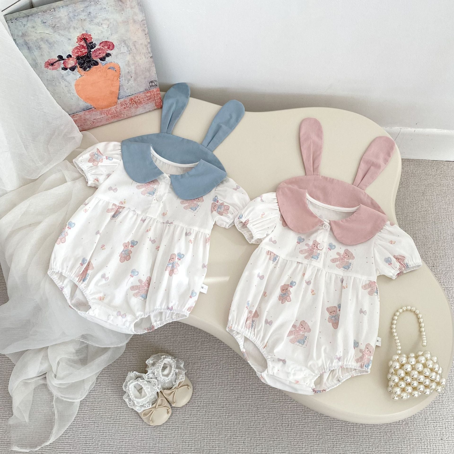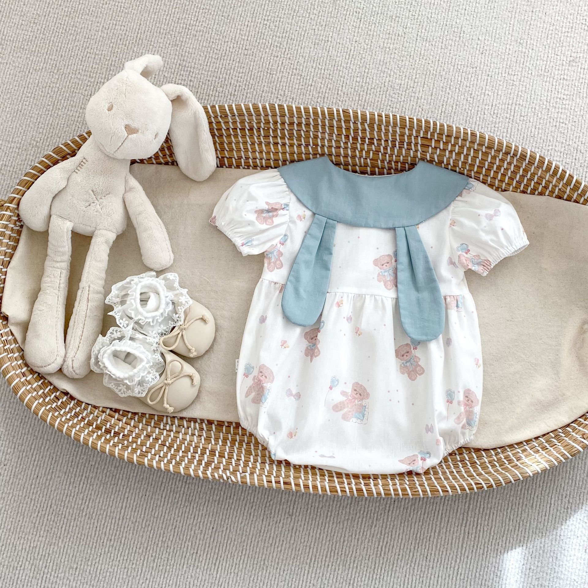 【BABY】夏新作 ウサギ襟クマ柄ロンパースSK062316