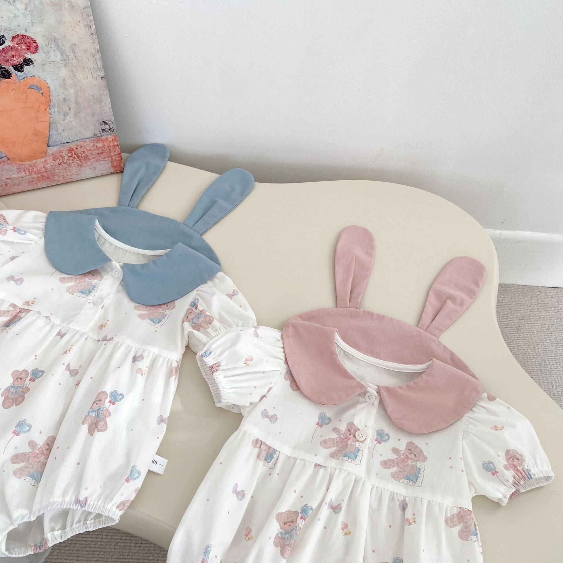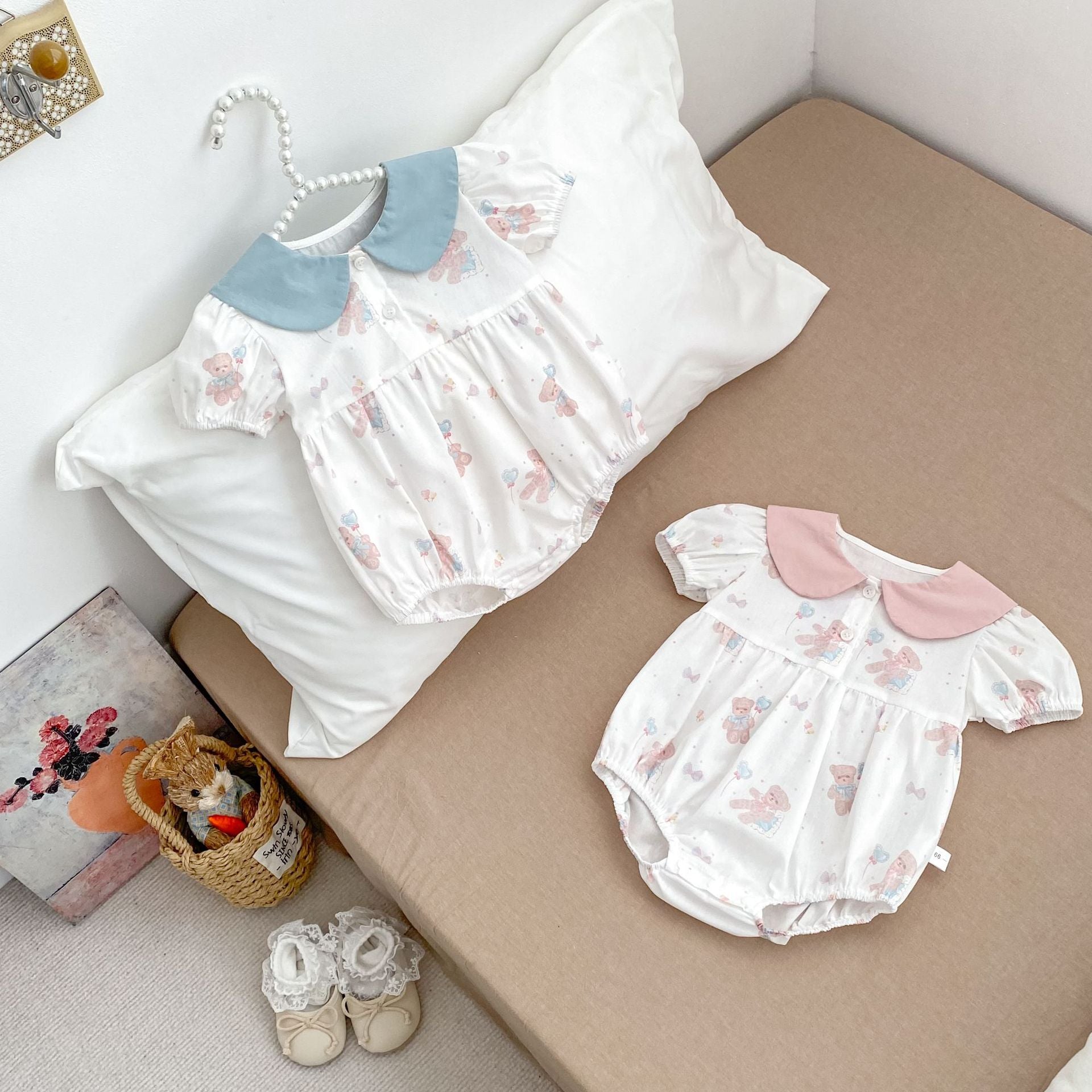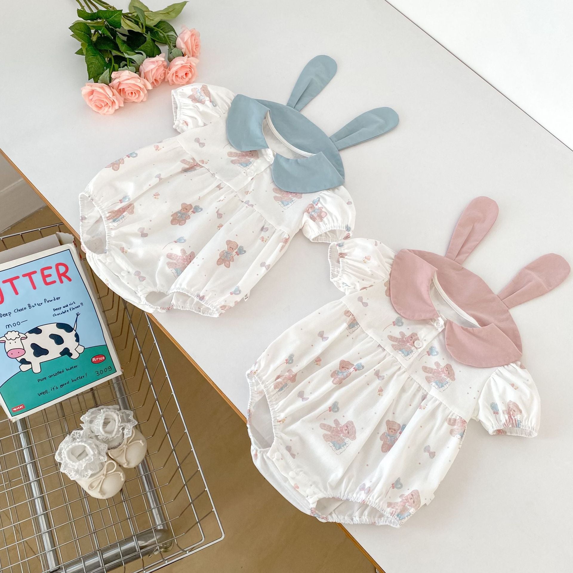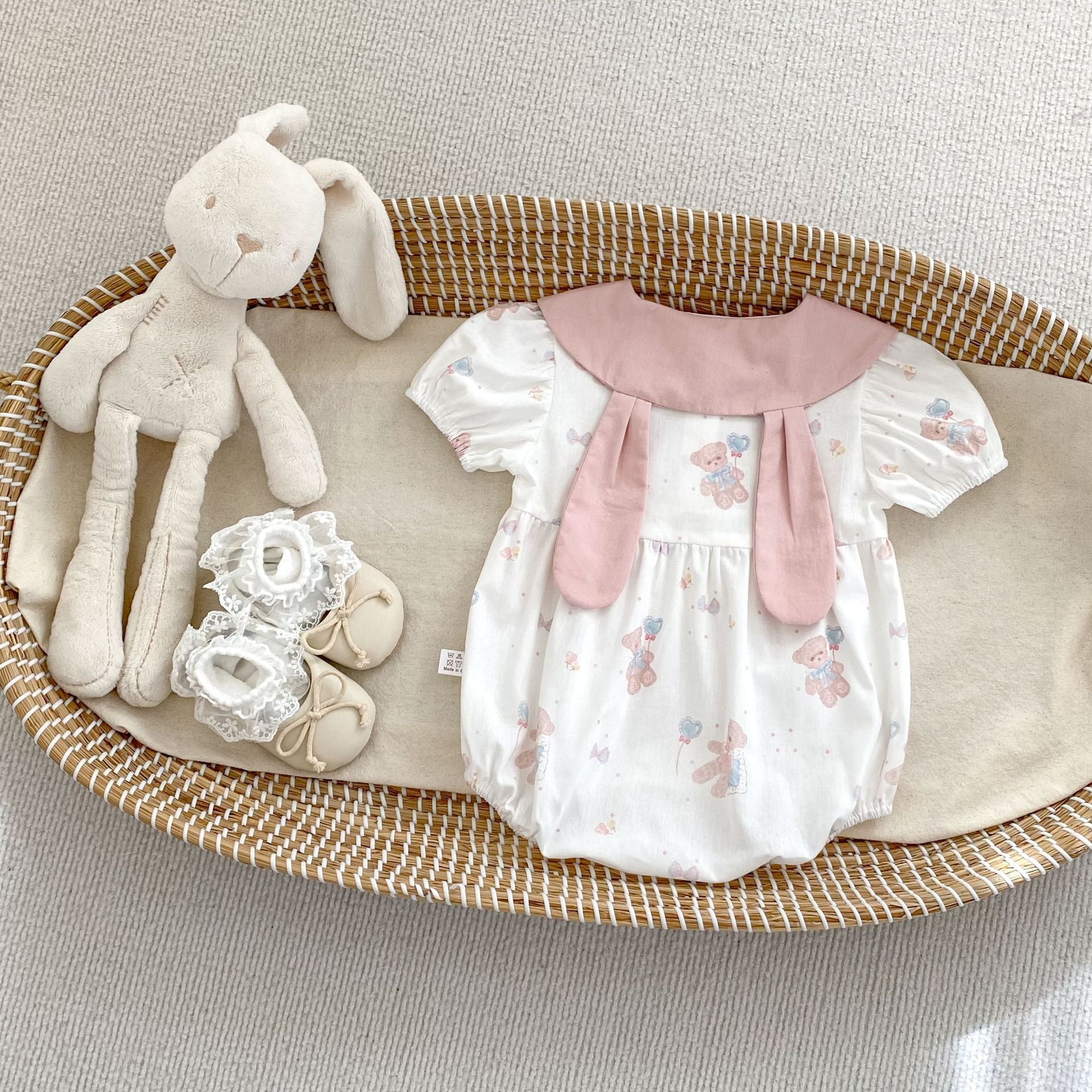 【BABY】夏新作 ウサギ襟クマ柄ロンパースSK062316