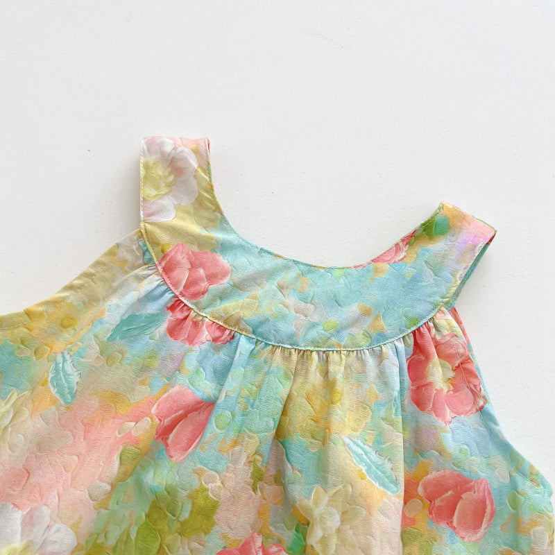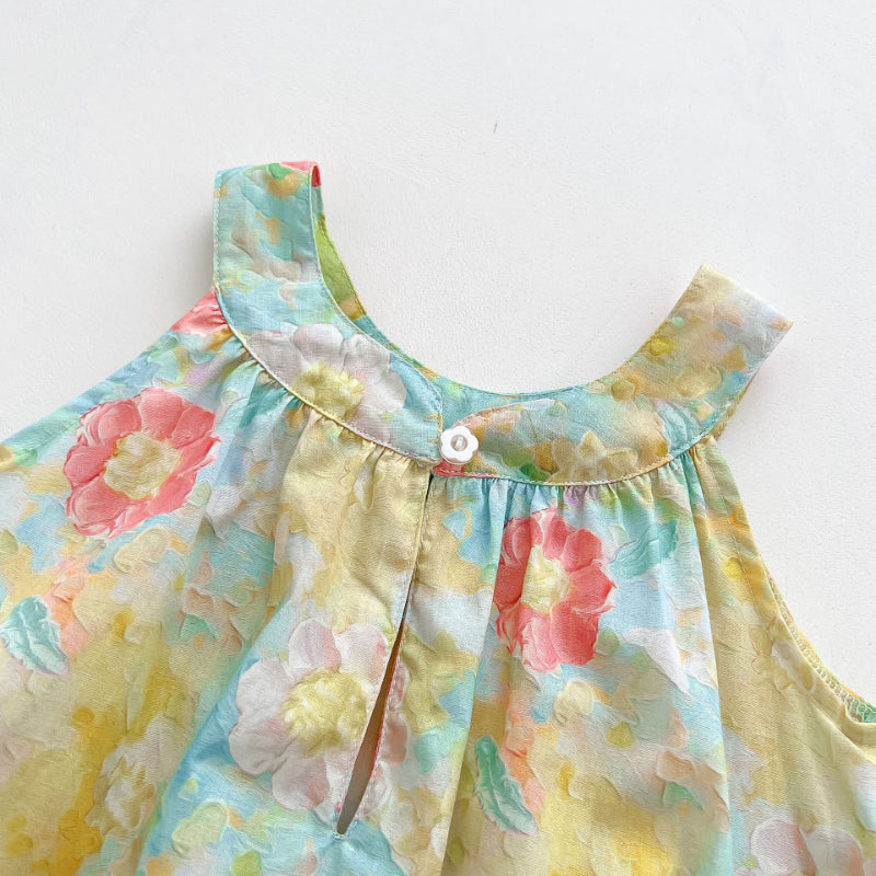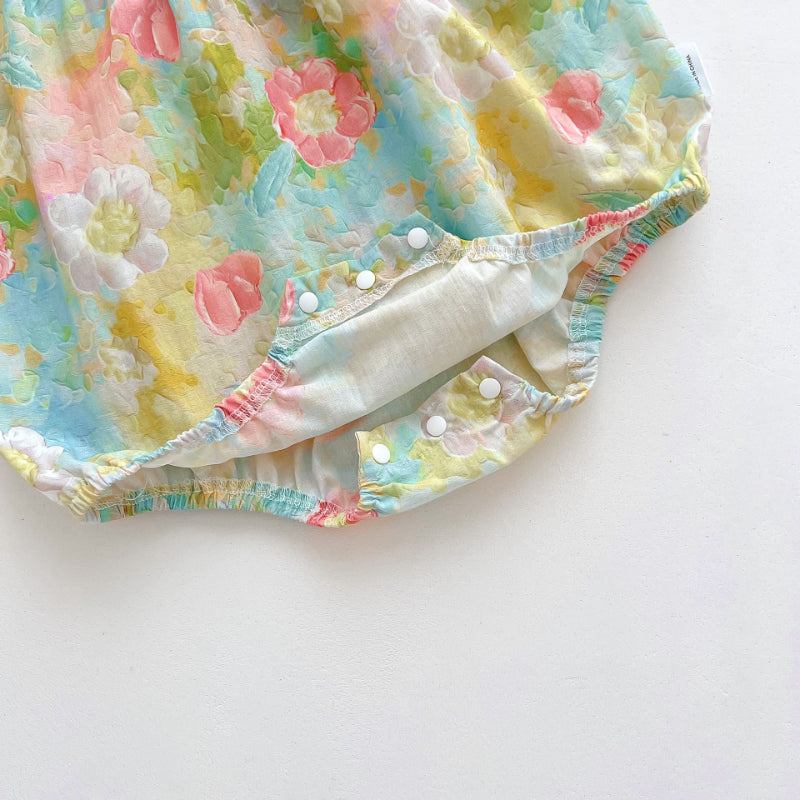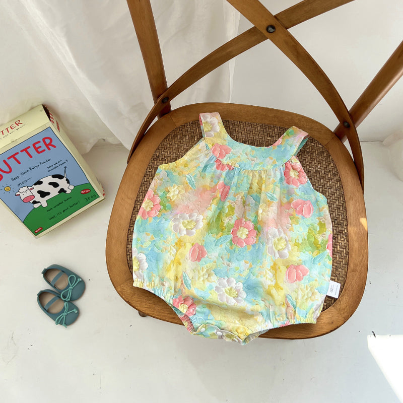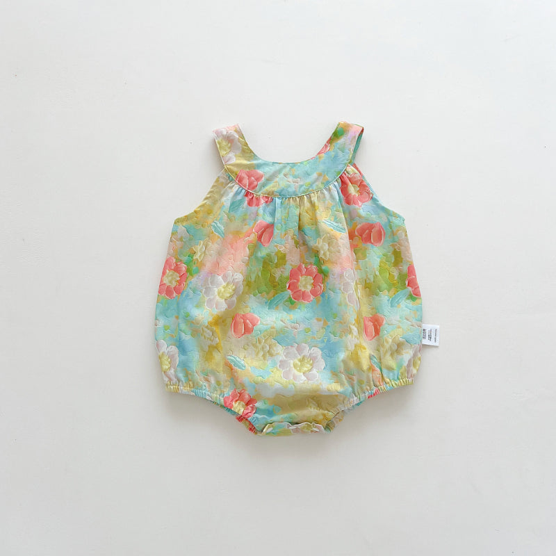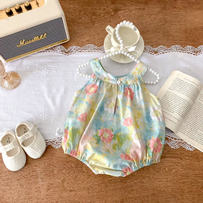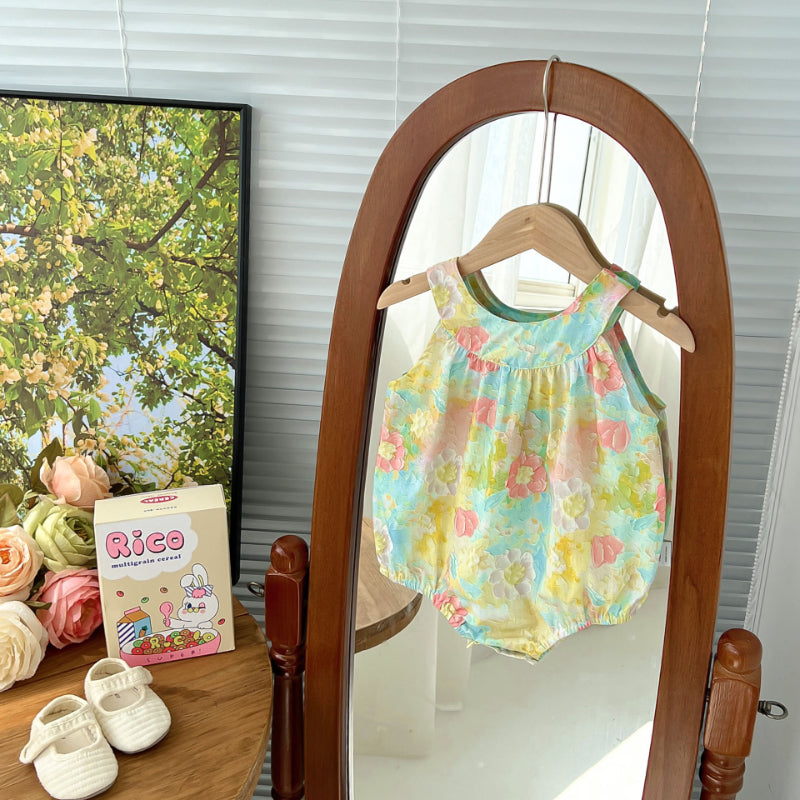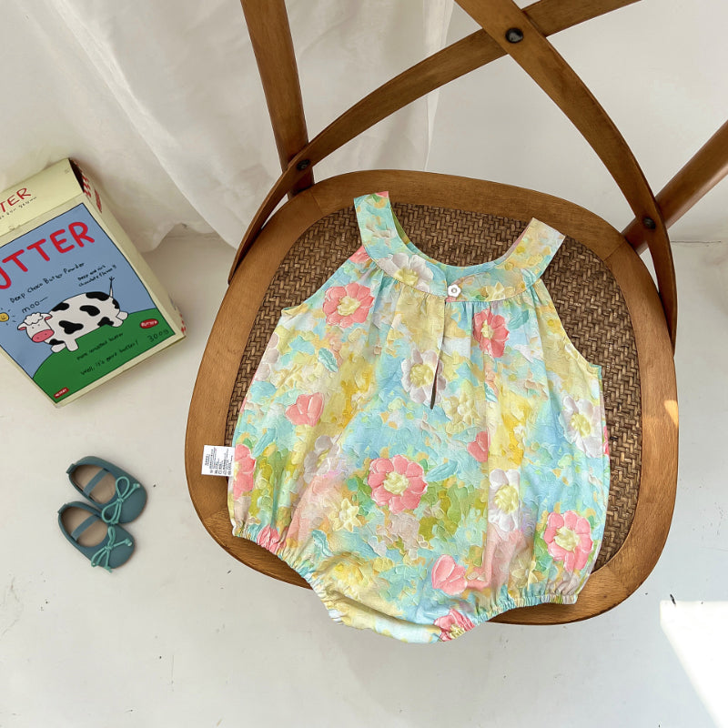 【BABY】夏新作 カラフルフラワーラウンドネックロンパースSK091920