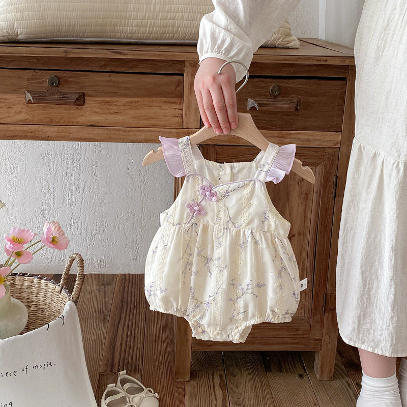【BABY】夏新作 ガーリー刺繍キャミロンパースSK090610