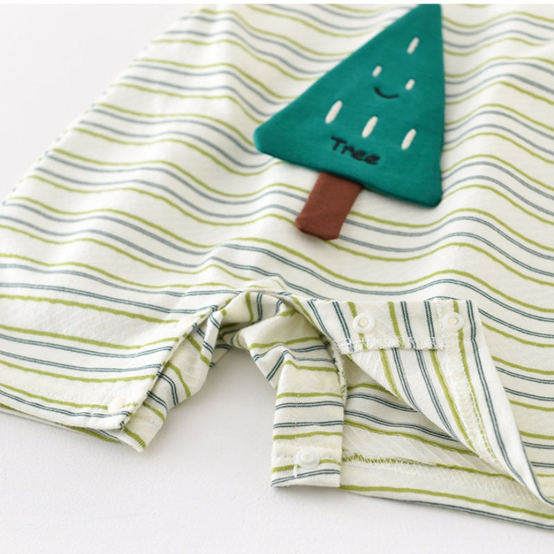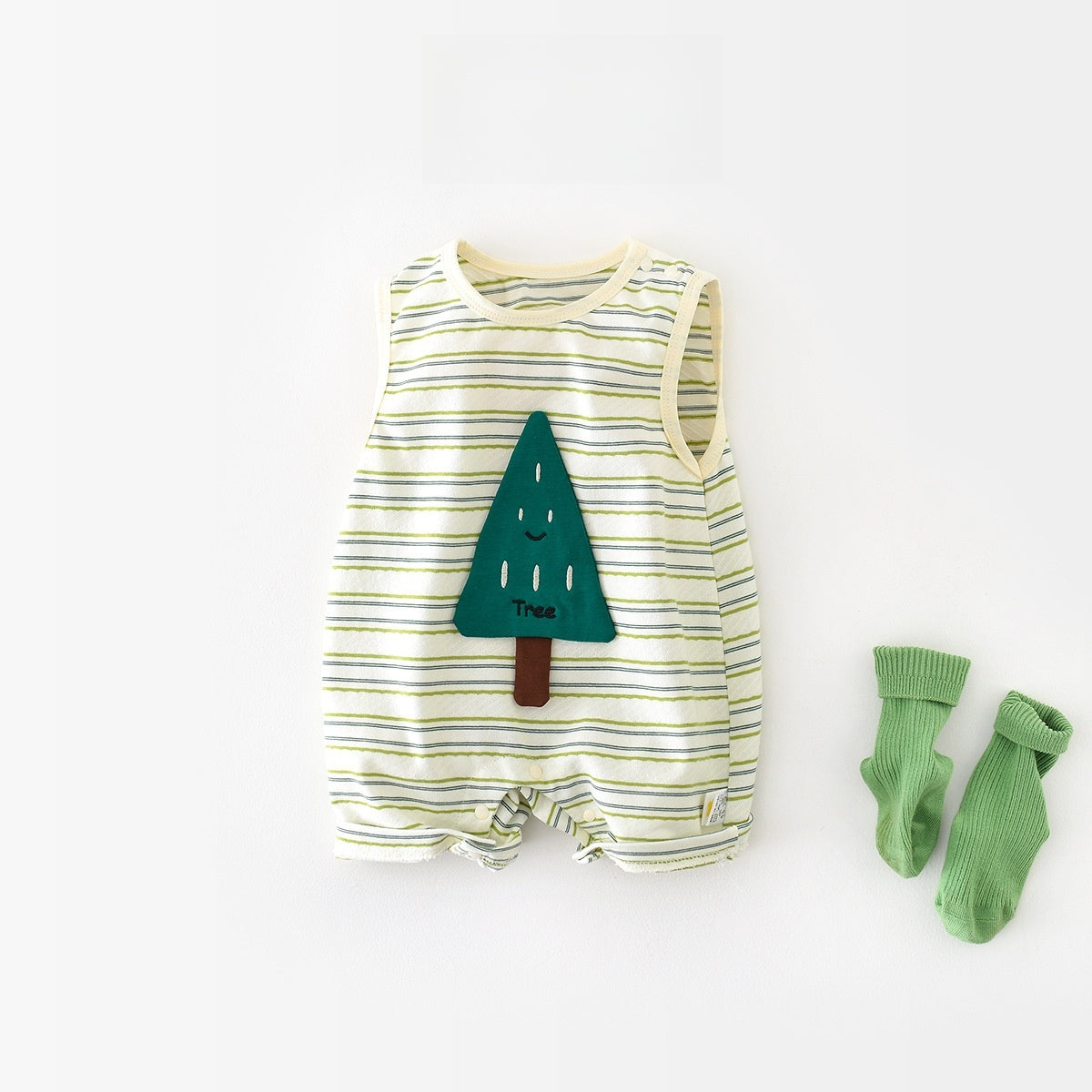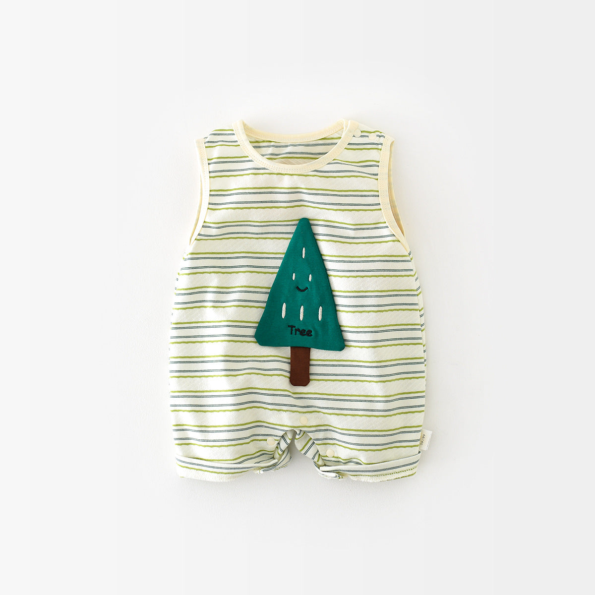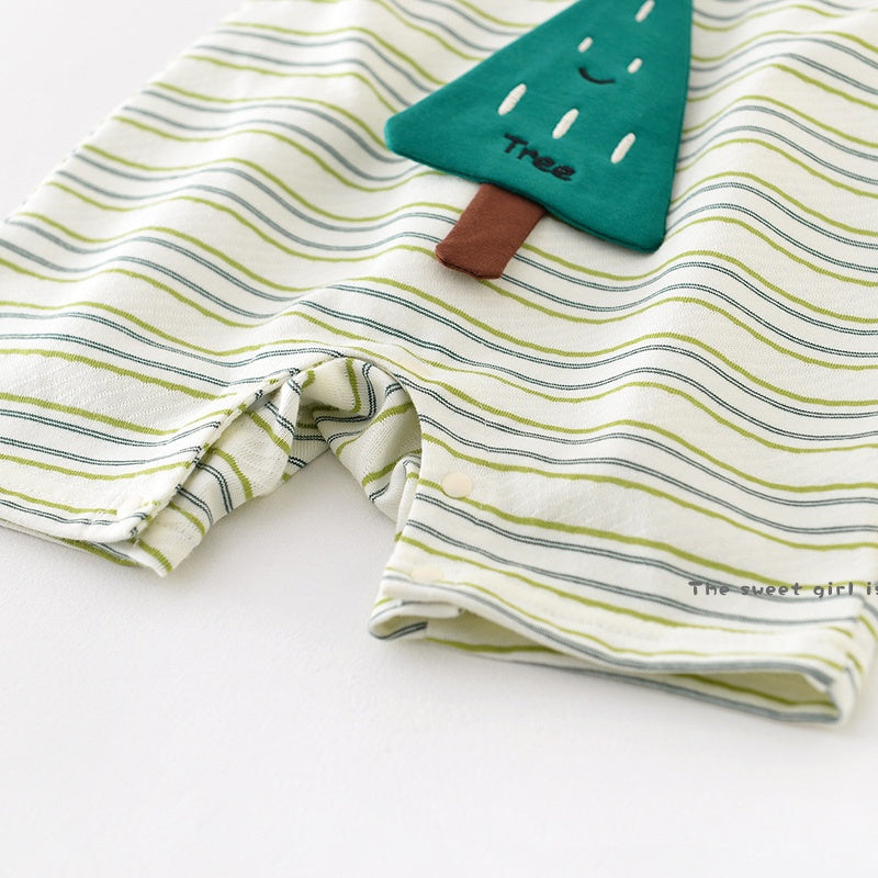 【BABY】夏新作 グリーンストライプ ツリープリントロンパースSK070805