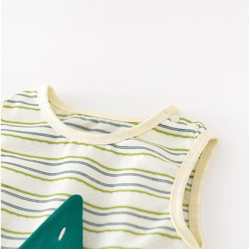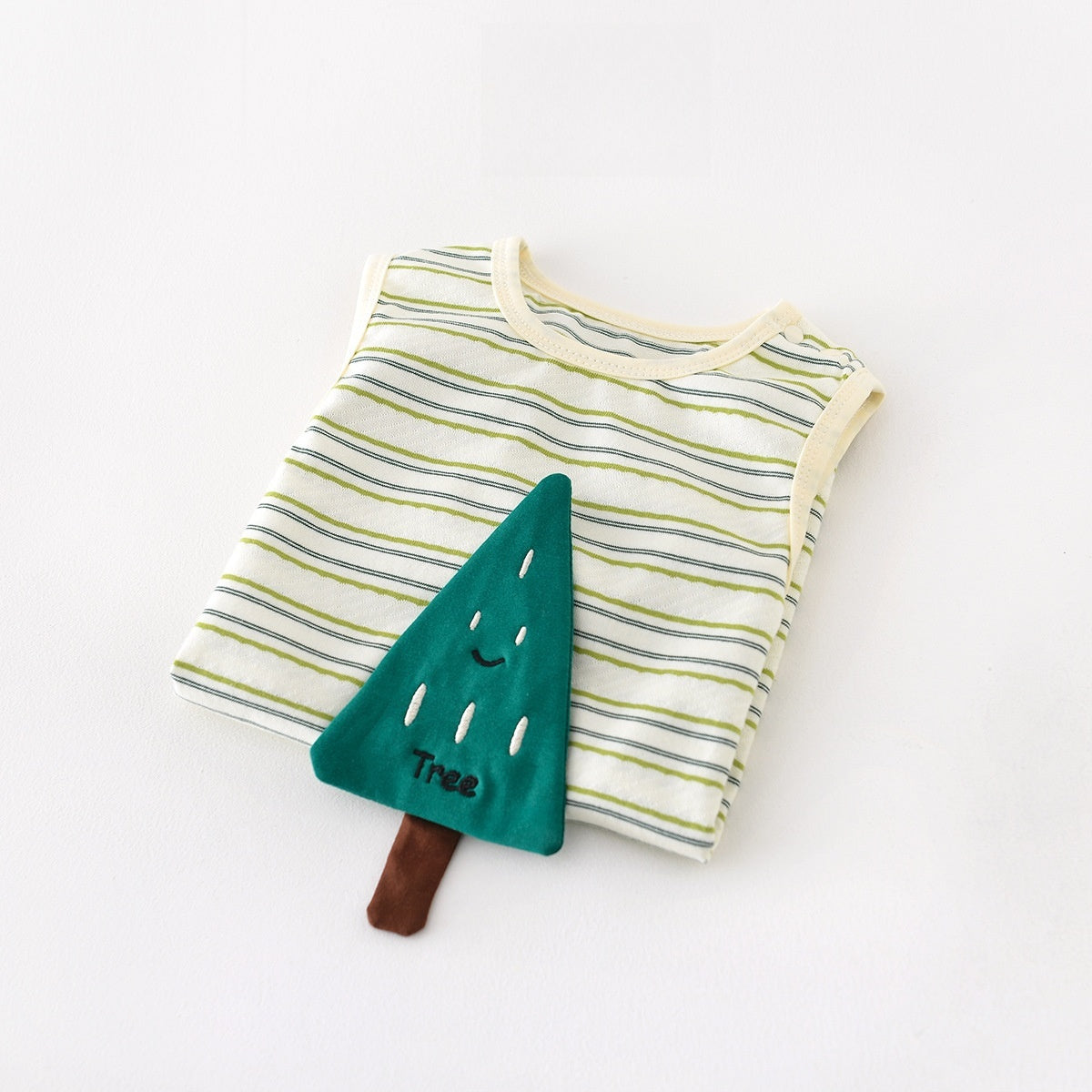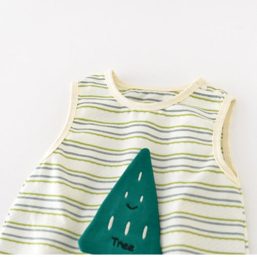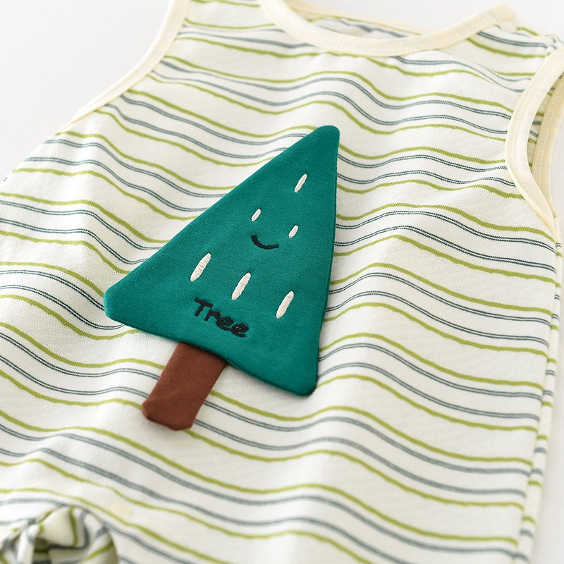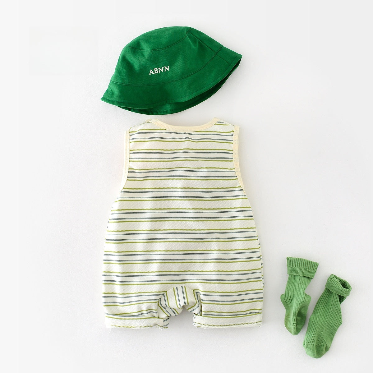 【BABY】夏新作 グリーンストライプ ツリープリントロンパースSK070805