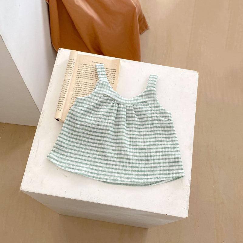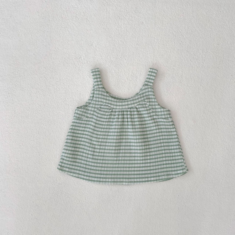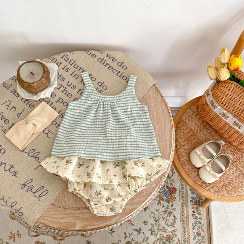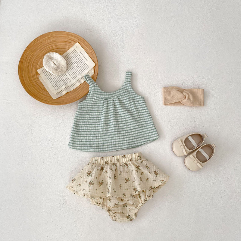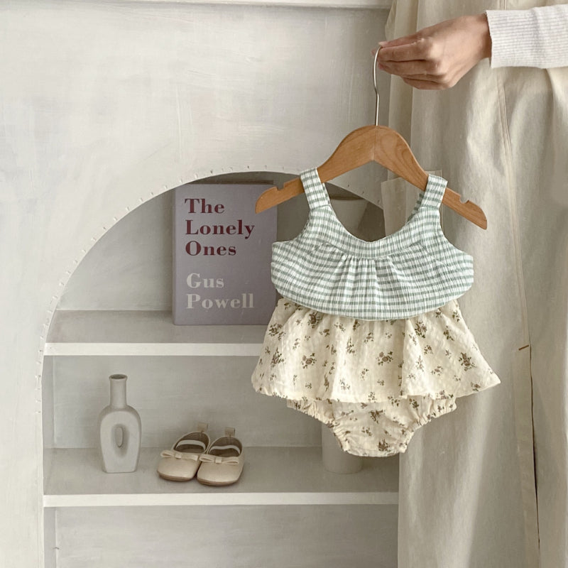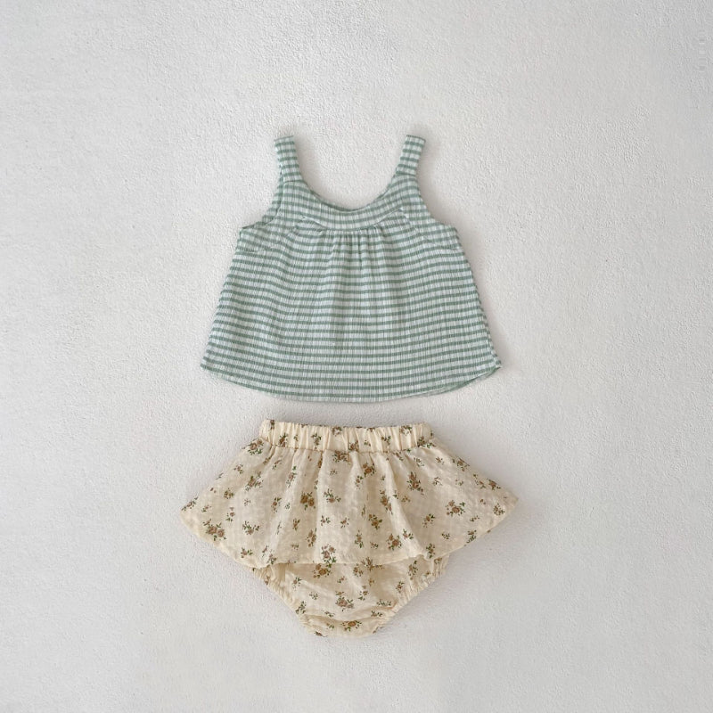 【BABY】夏新作 グリーンチェックキャミ&フラワーショーツセットアップSK071916