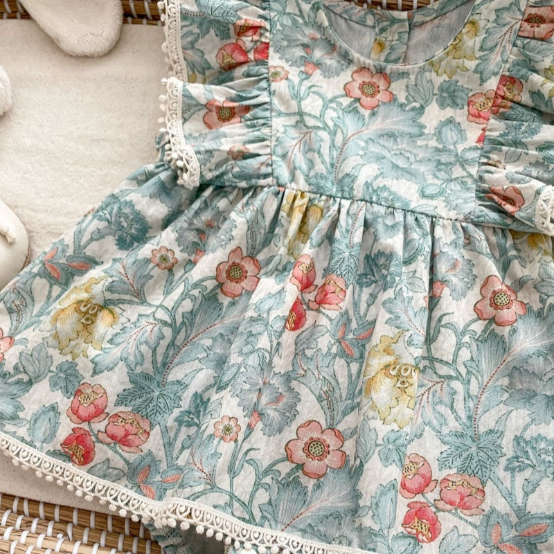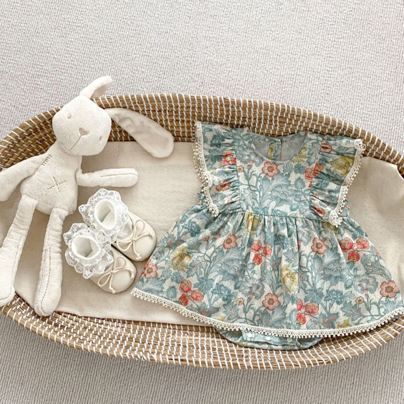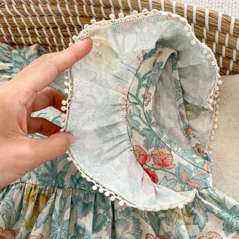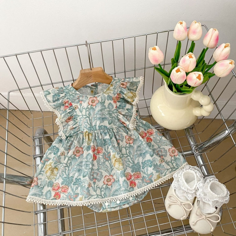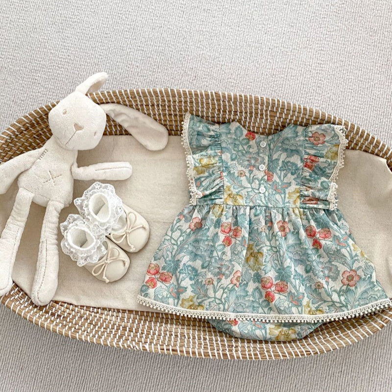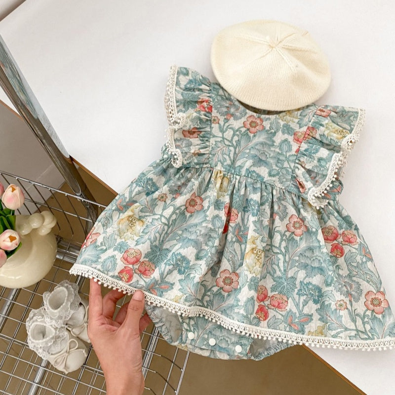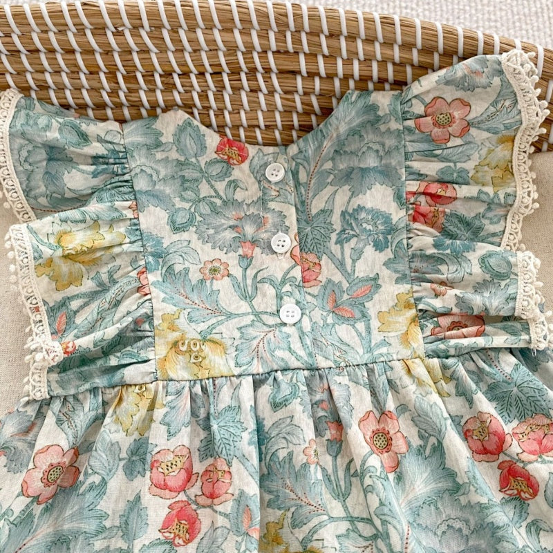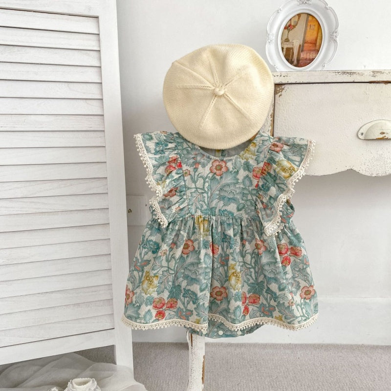 【BABY】夏新作 グリーン花柄フライングスリーブロンパースSKO70715