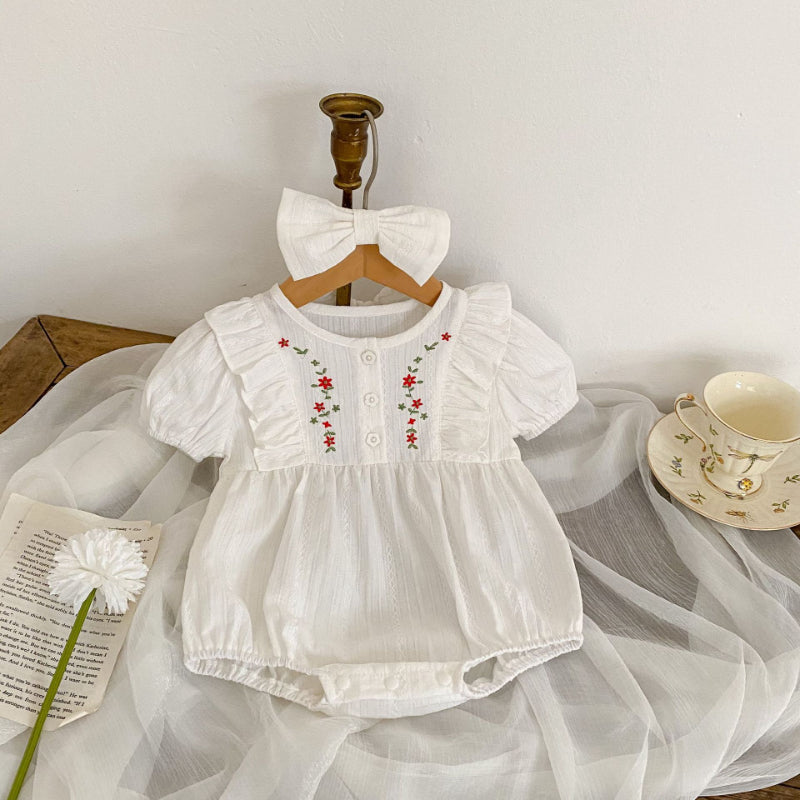 【BABY】夏新作 コットンのスタイリッシュな刺繍入りラウンドネックロンパースSKO70706