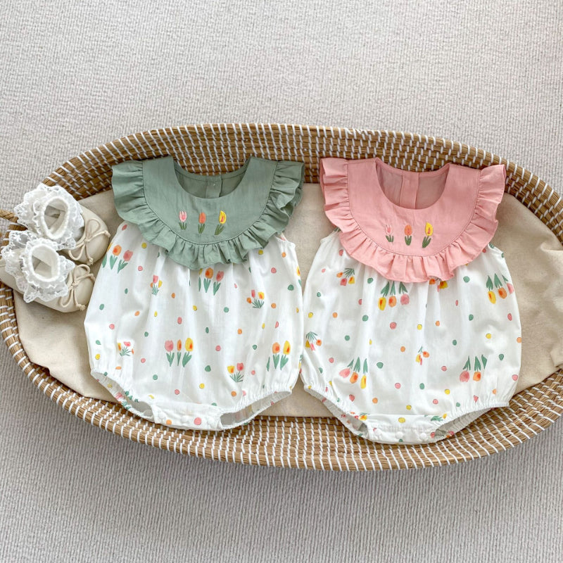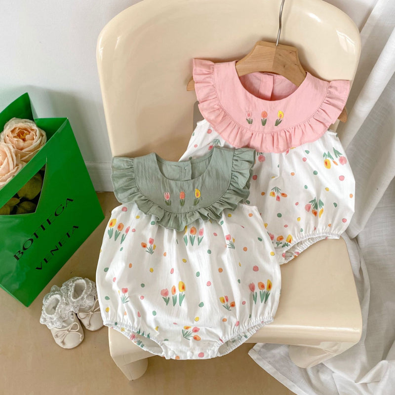 【BABY】夏新作 スイートフラワー刺繍ロンパースSKO70703