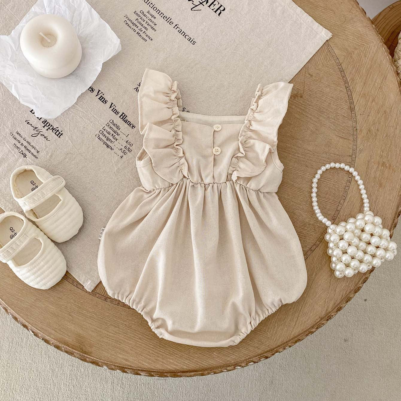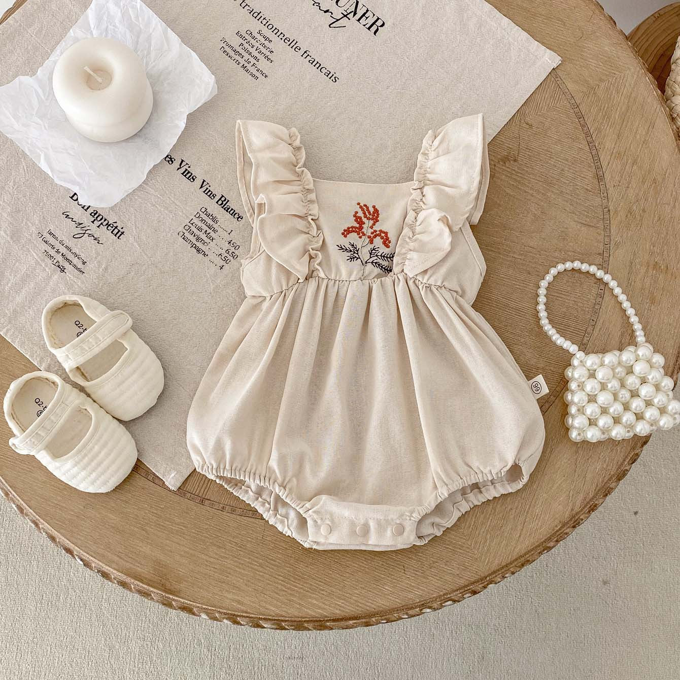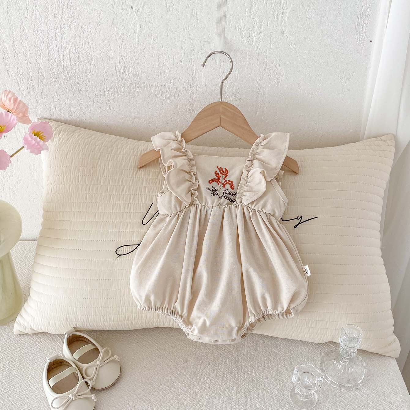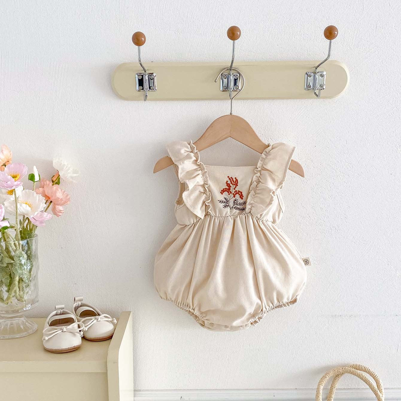 【BABY】夏新作 スウィート刺繍フリルロンパースSK062717