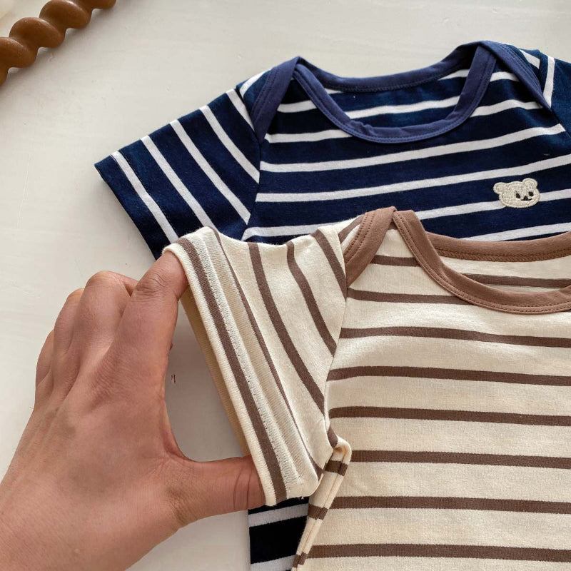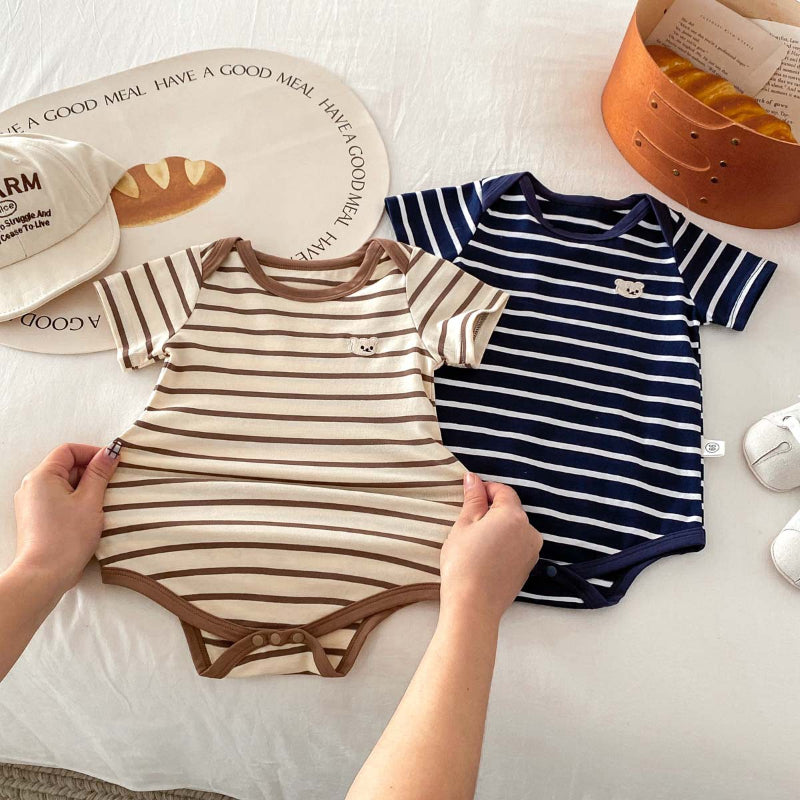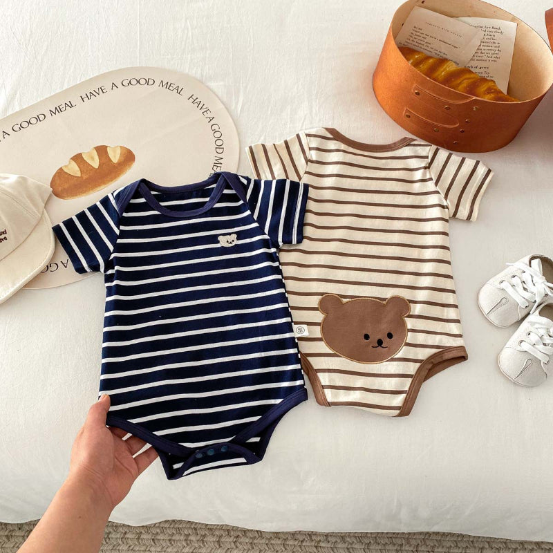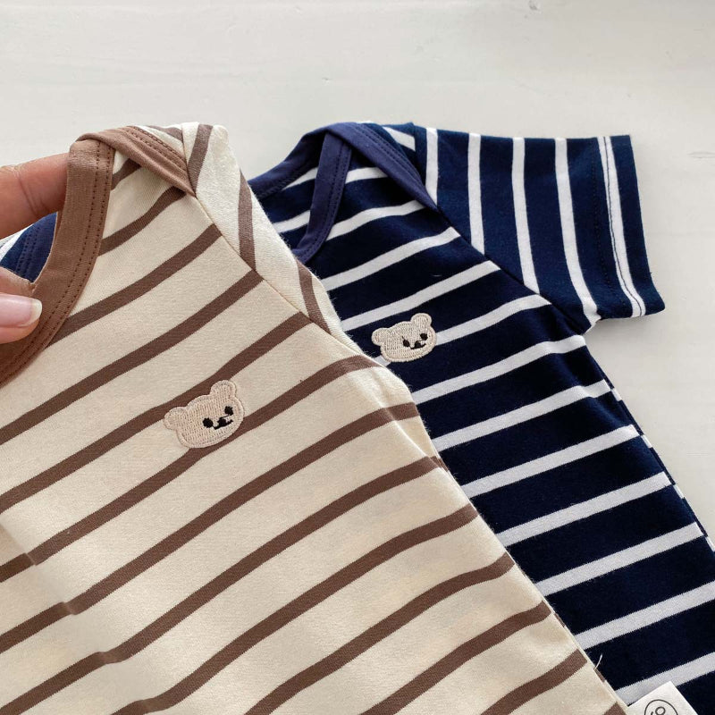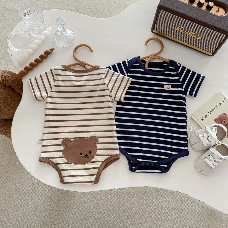 【BABY】夏新作 ストライプのカートゥーンベアロンパースSK091322