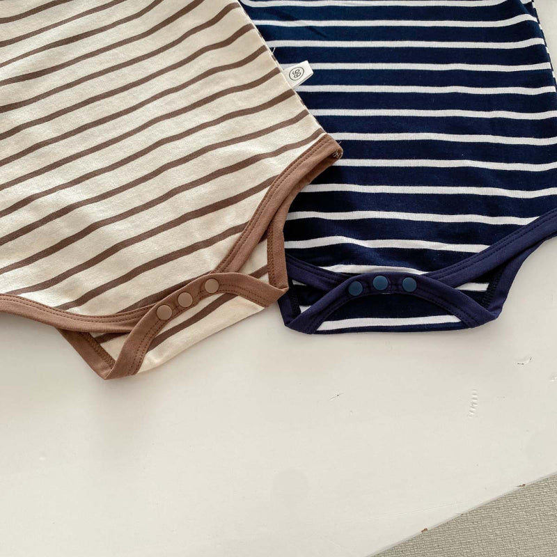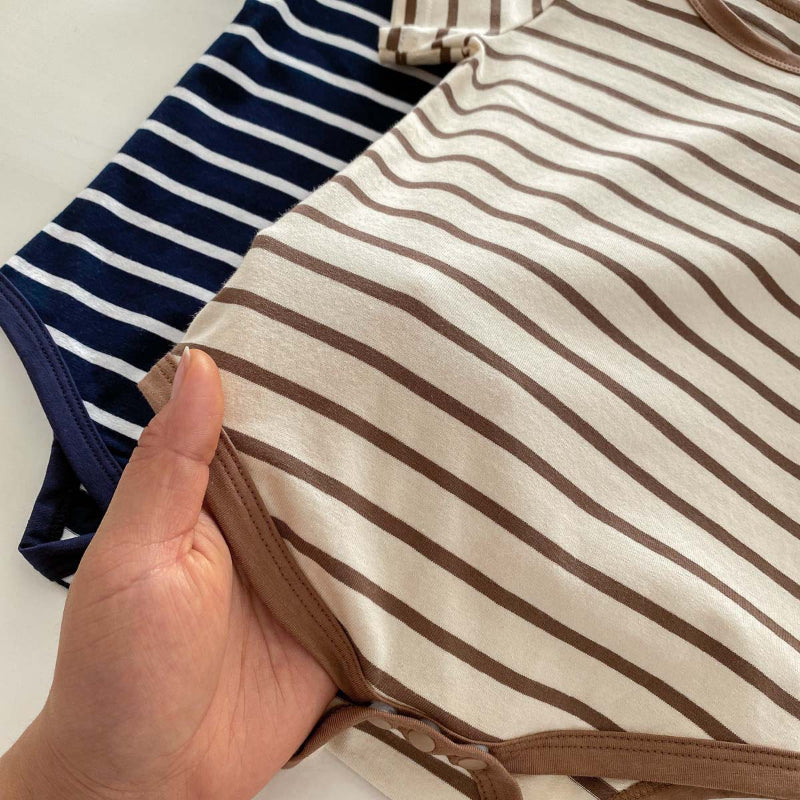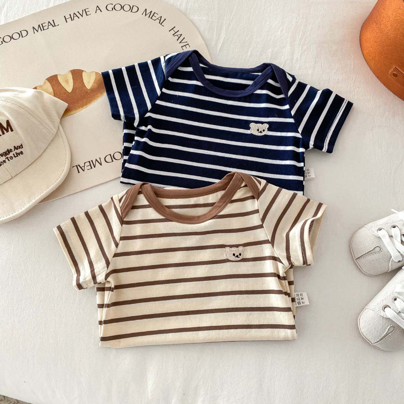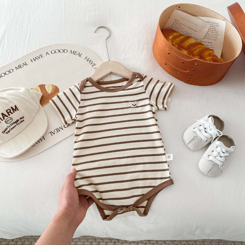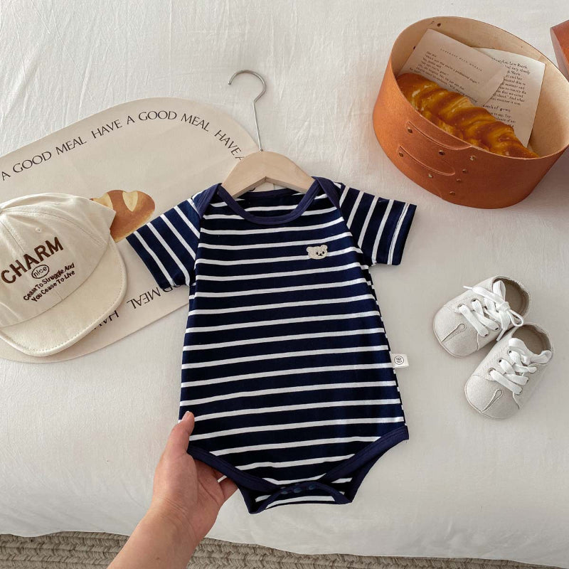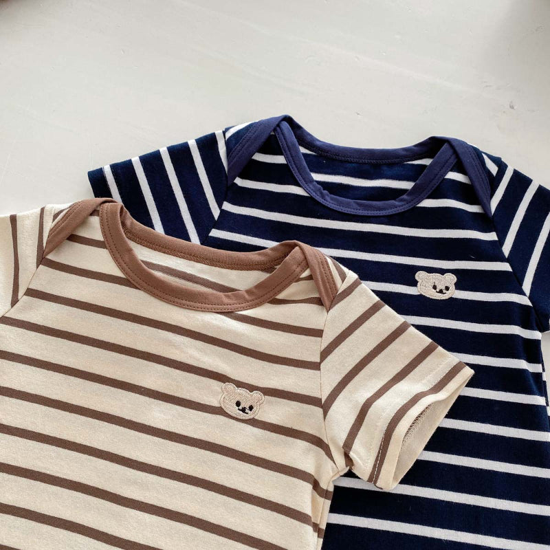 【BABY】夏新作 ストライプのカートゥーンベアロンパースSK091322