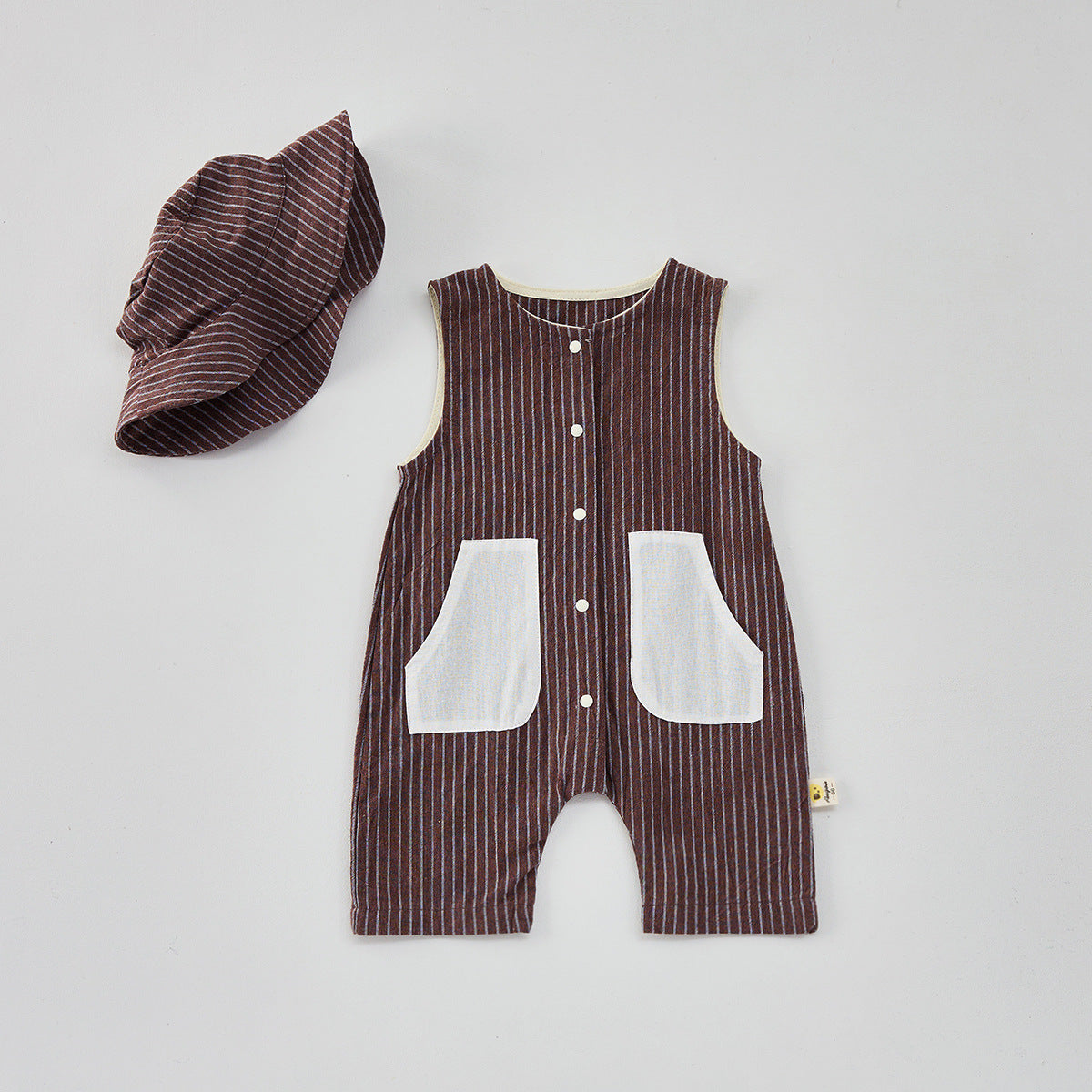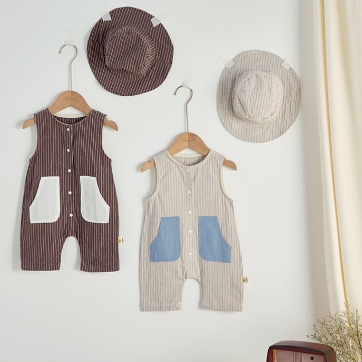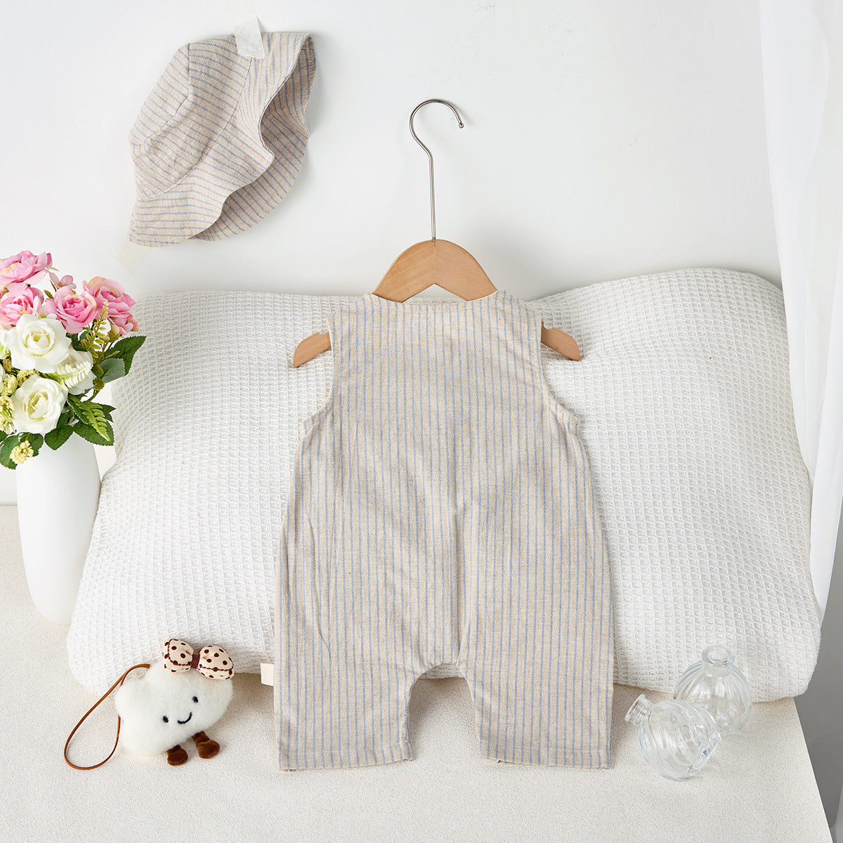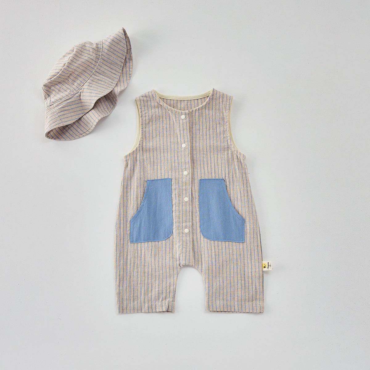 【BABY】夏新作 ストライプノースリーブロンパース&帽子SK062707