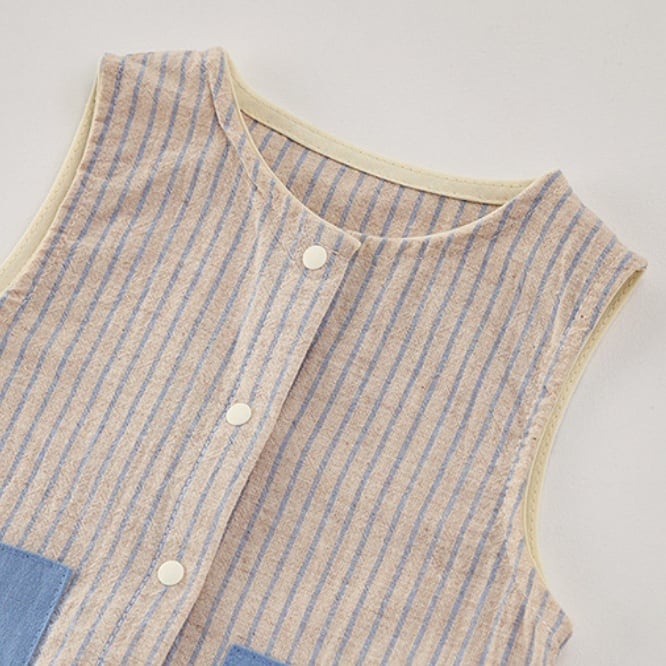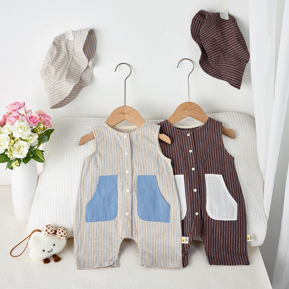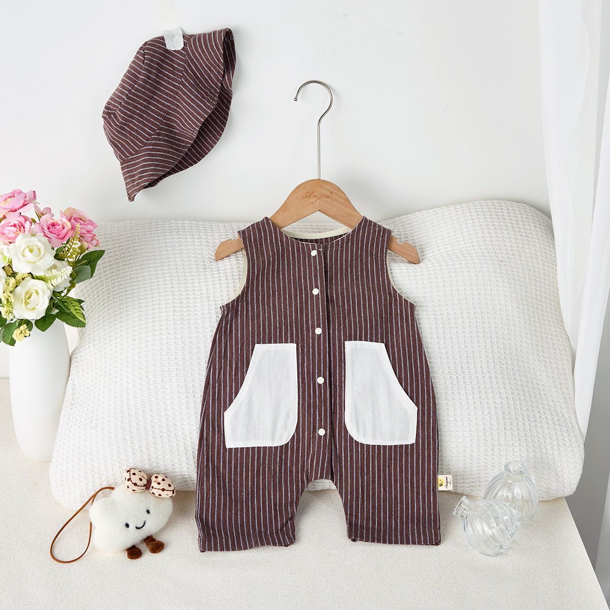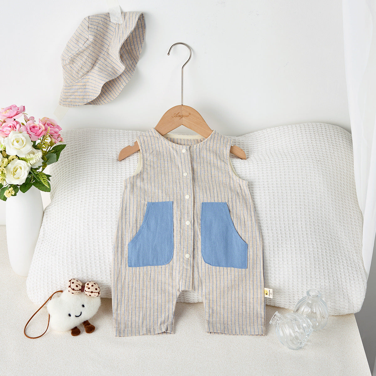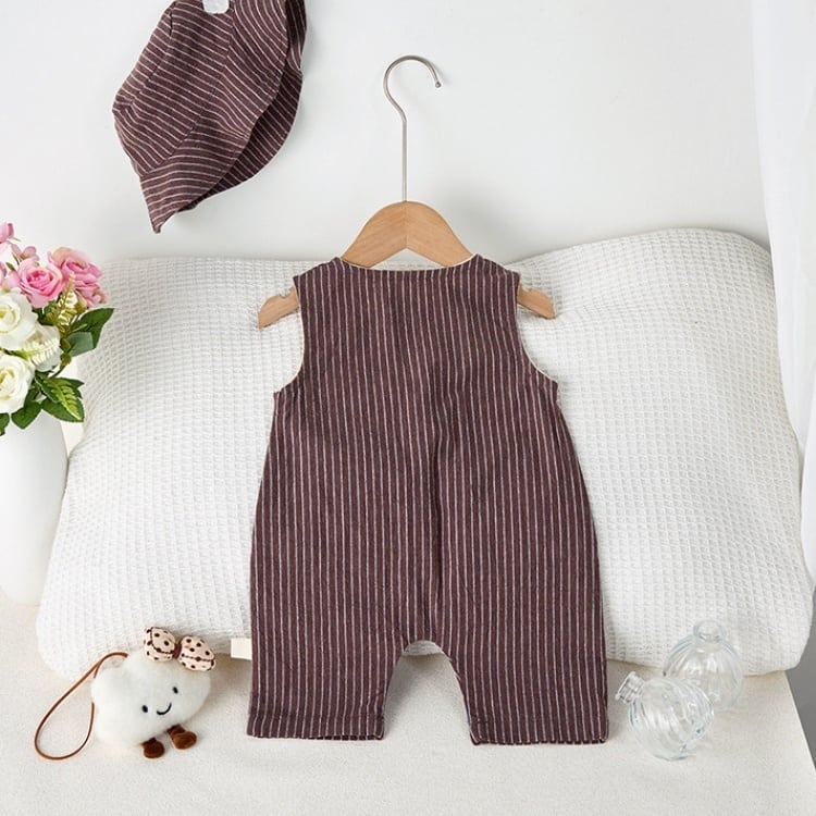 【BABY】夏新作 ストライプノースリーブロンパース&帽子SK062707
