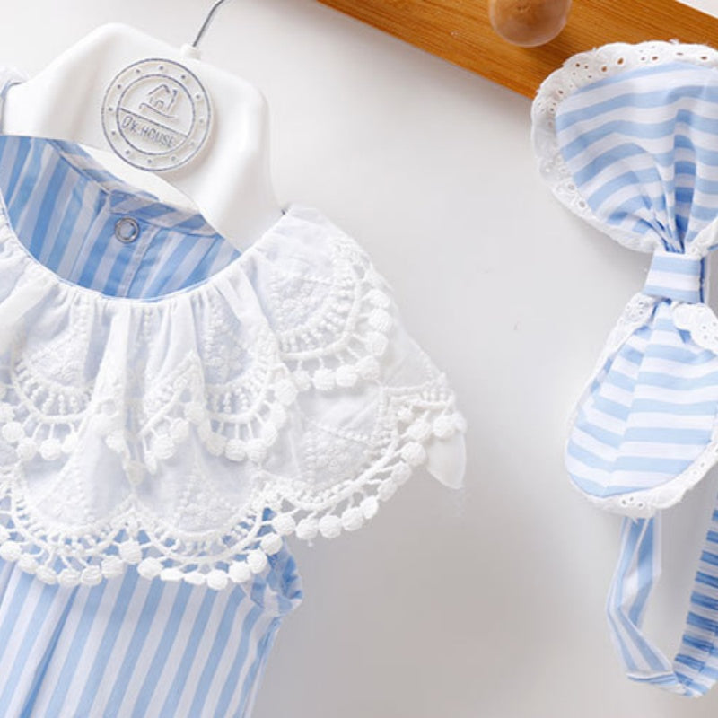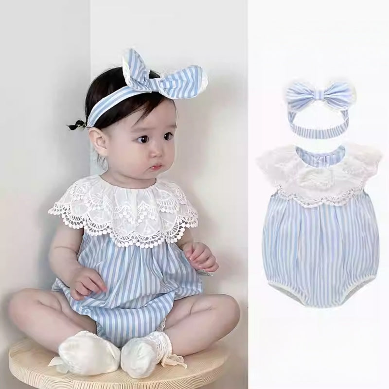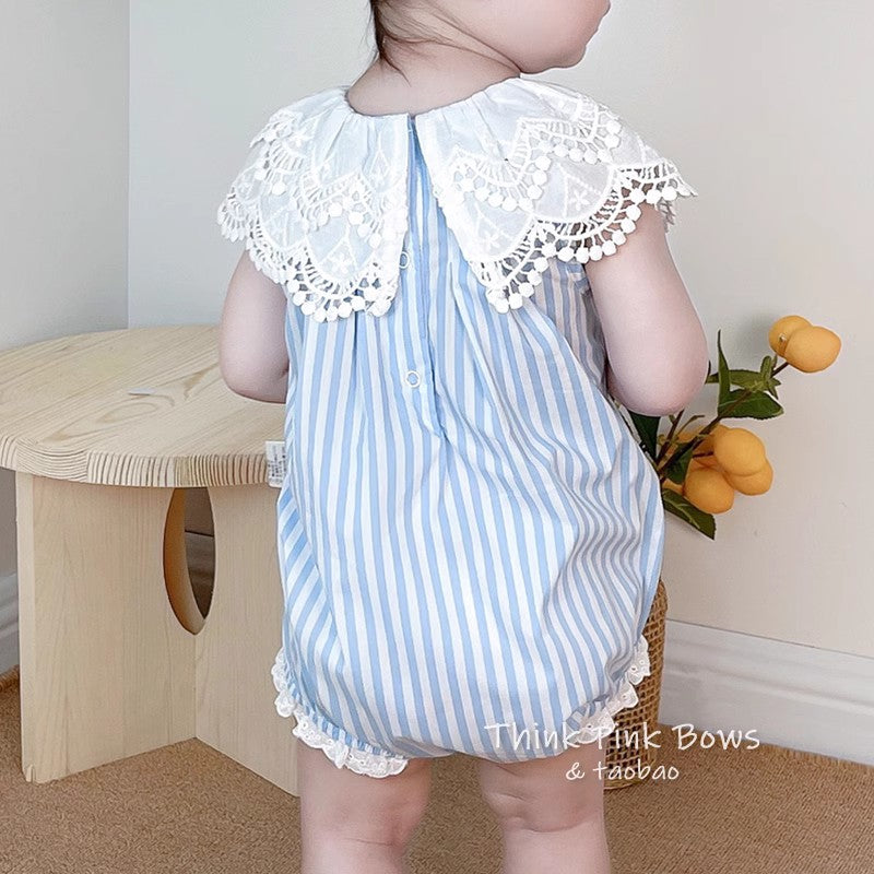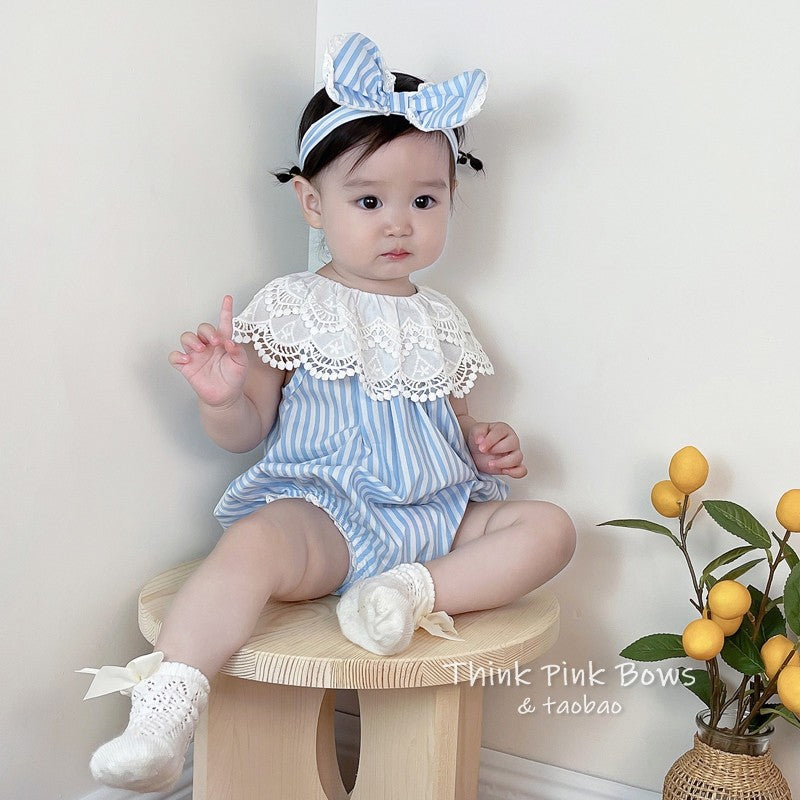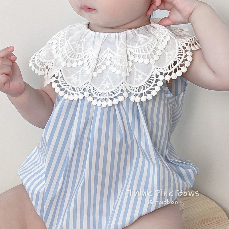 【BABY】夏新作 ストライプレース襟ロンパースSK092608