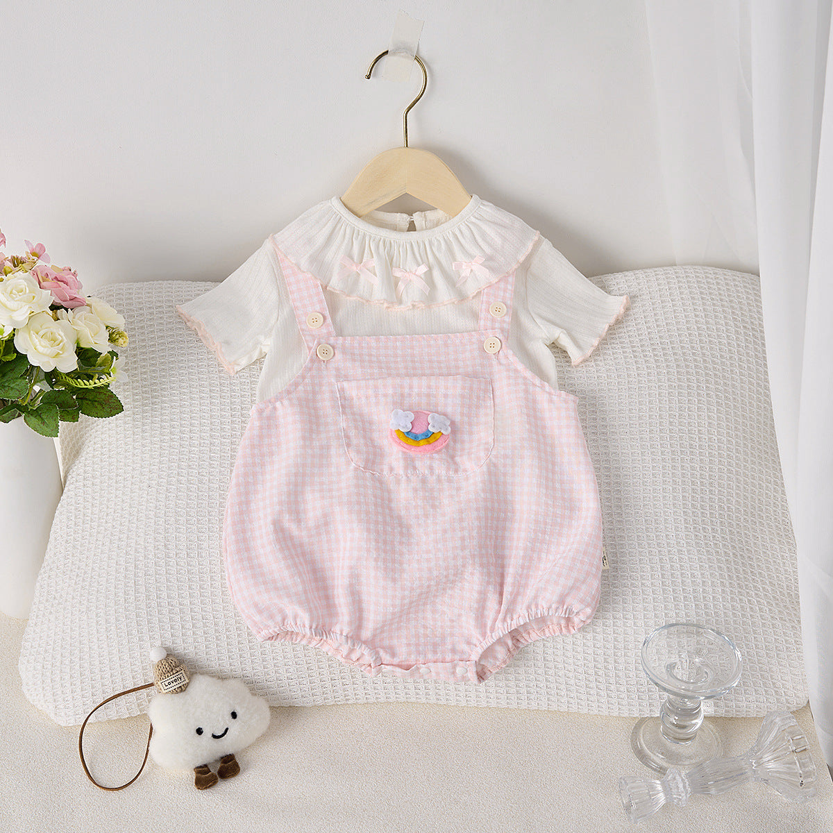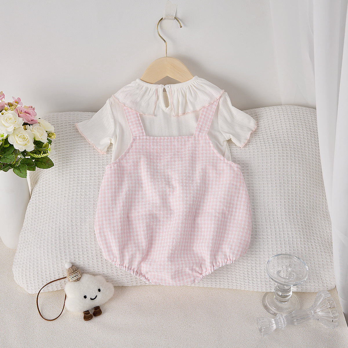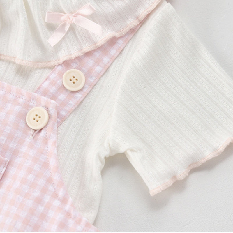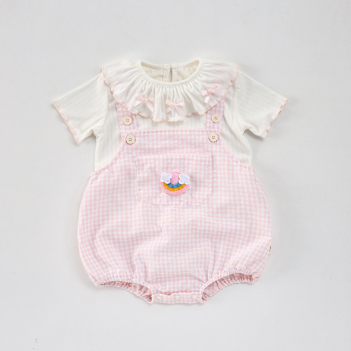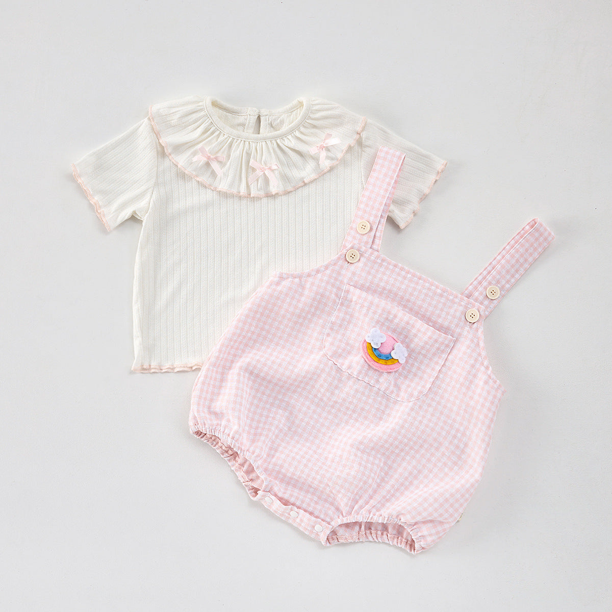 【BABY】夏新作 チェックサロペットロンパース&TシャツSK092615
