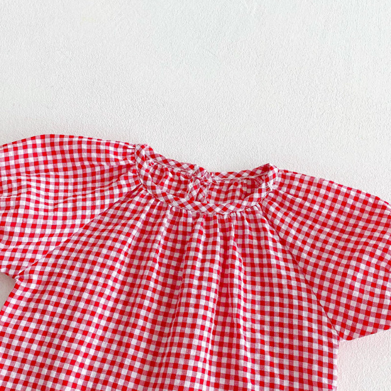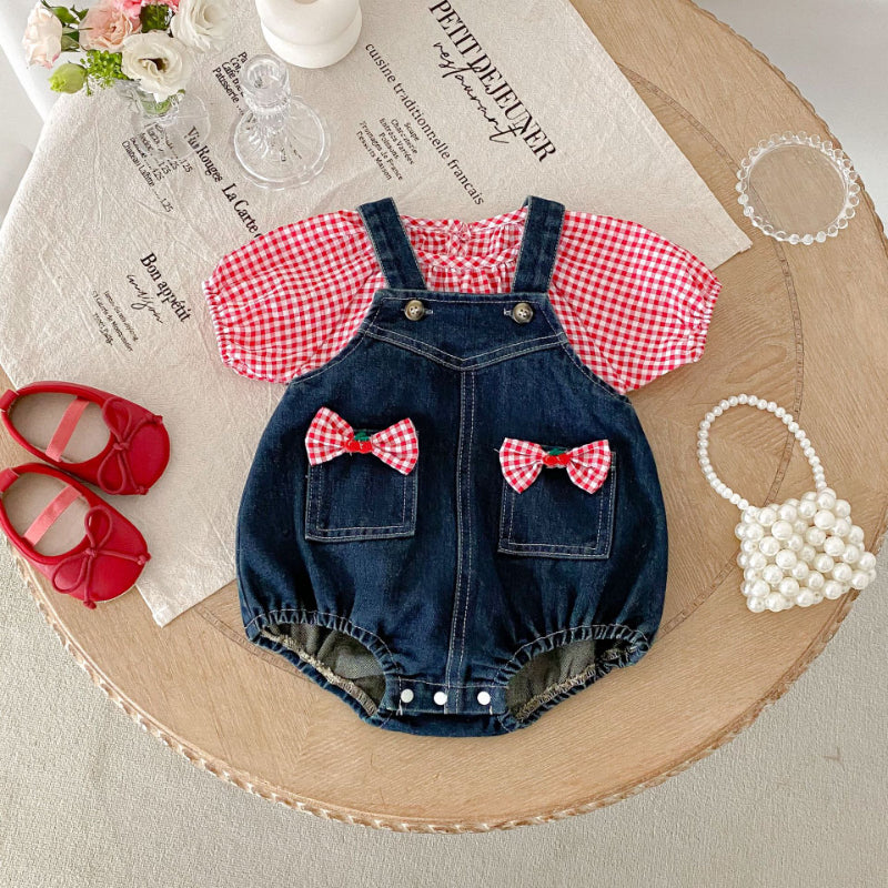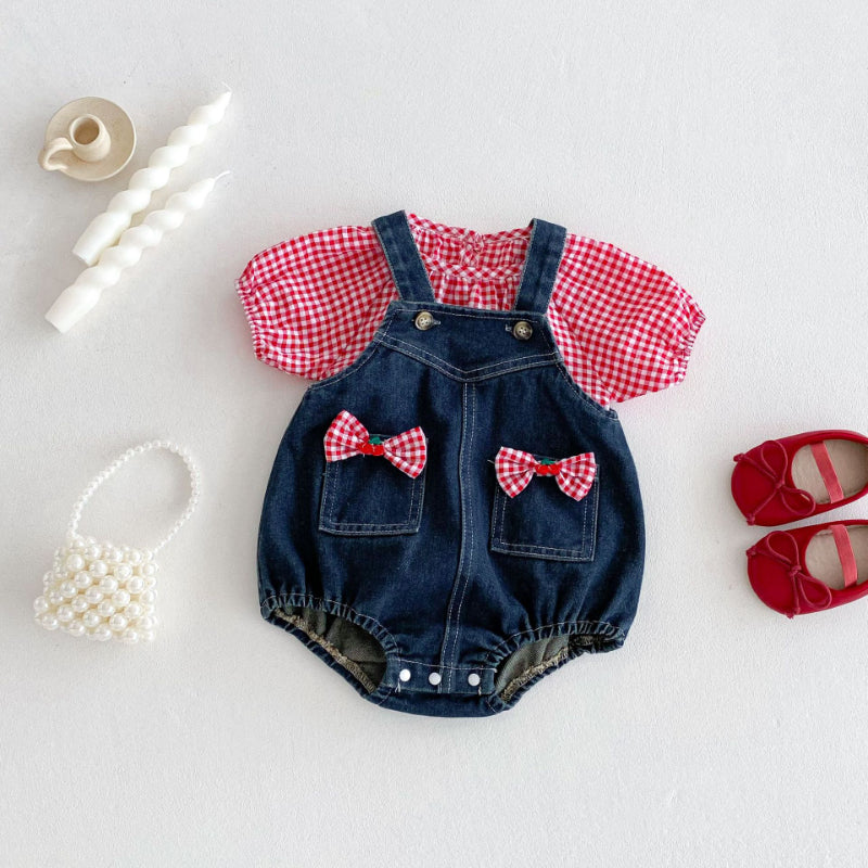 【BABY】夏新作 チェックトップス&デニムロンパースSK091108